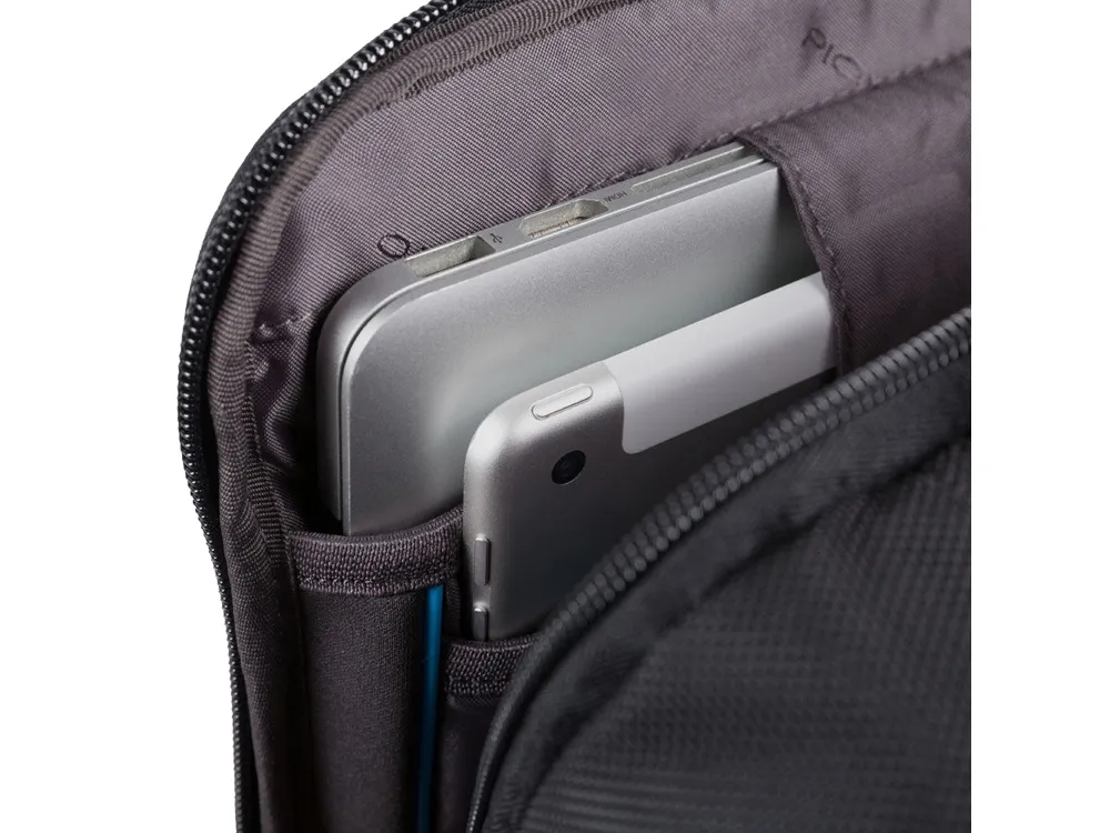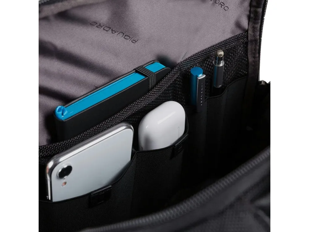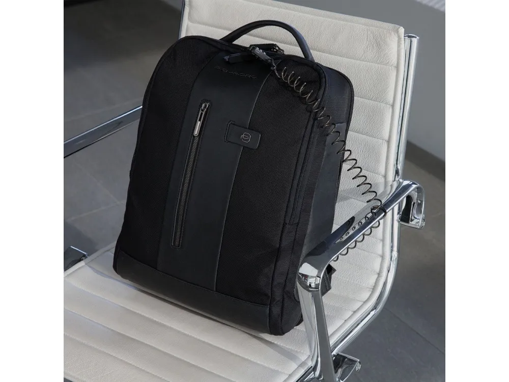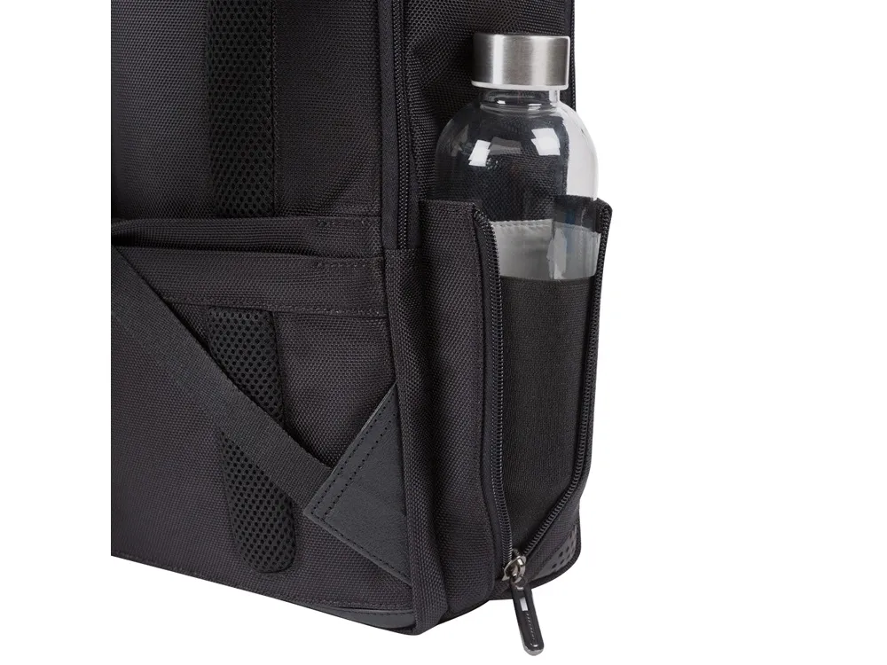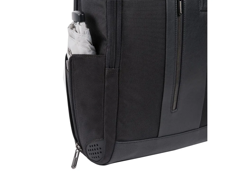 Рюкзак из переработанного текстиля с отделениями для ноутбука и iPad®, радиочастотной защитой и противокражным тросом - мягкое отделение для ноутбука 15,6" - отделение для iPad® 10,2'', iPad® Air 10,9'', iPad®Pro 11'' - внутренний карман для мобильного телефона - карман для AirPods® - складной карман для бутылки - карман для зонта - петля для ручки - карман для мелких предметов - отстегиваемая адресная бирка - ремень для крепления на ручке чемодана