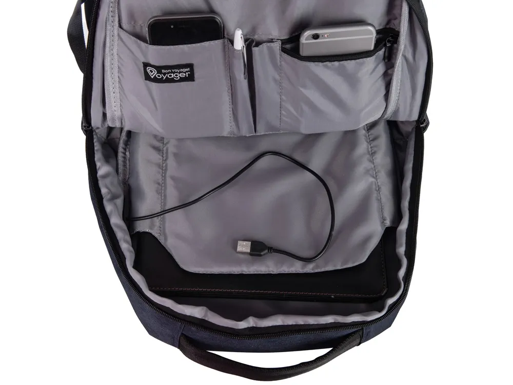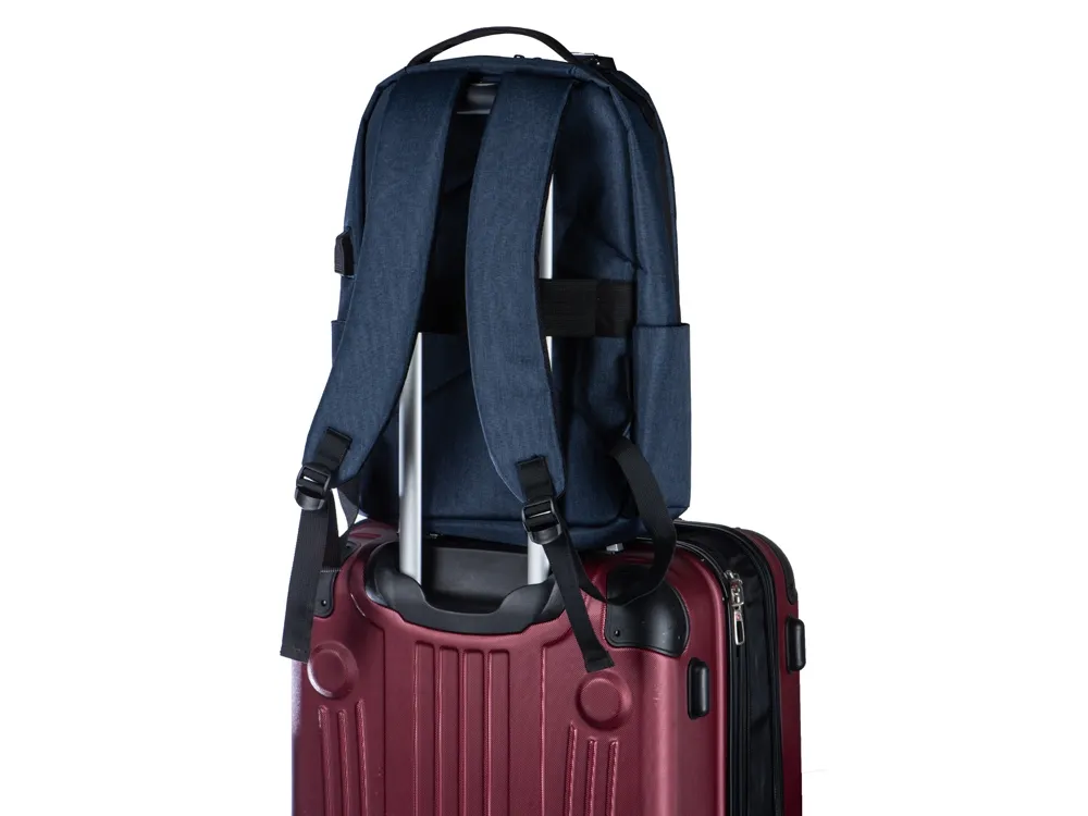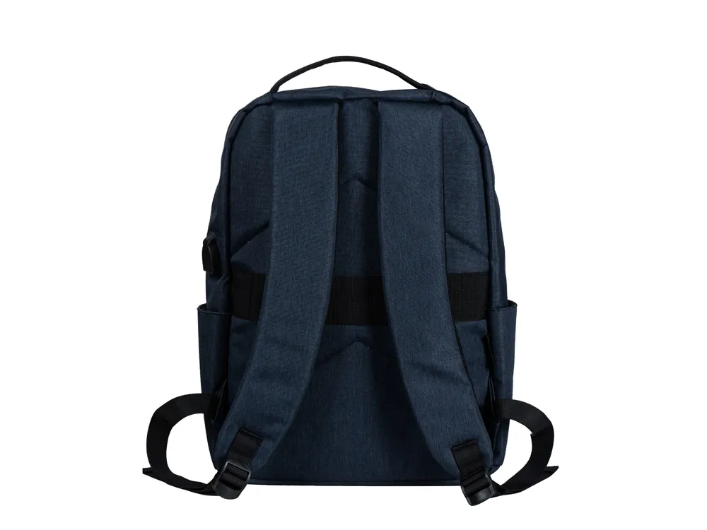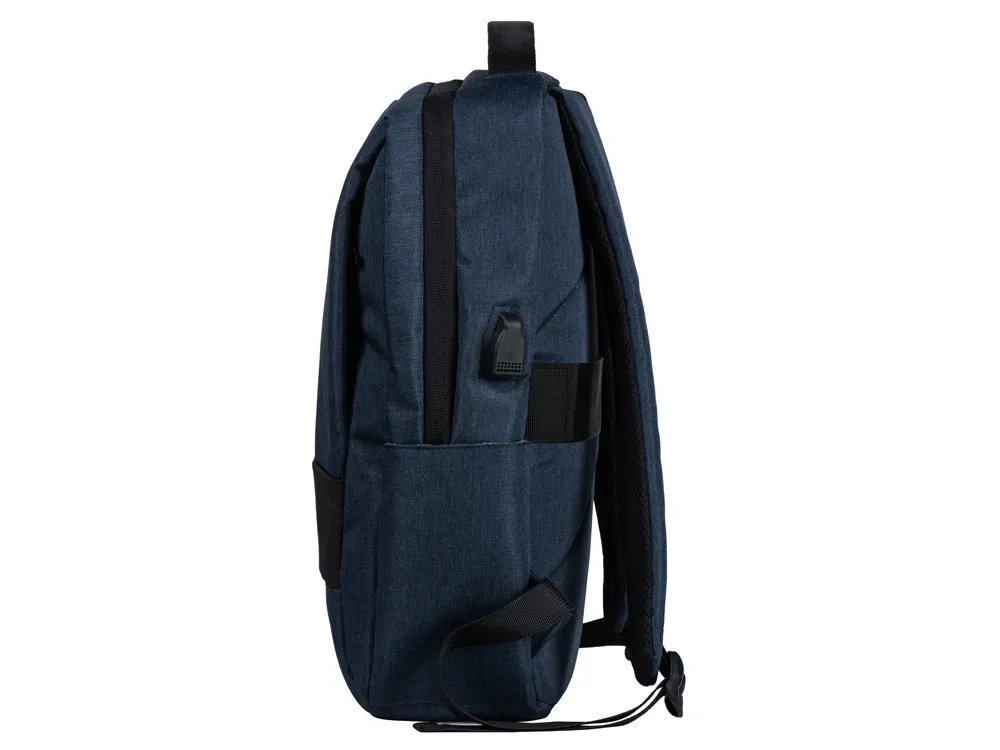 Отличный функциональный бизнес-рюкзак оснащен всем необходимым: - 2 боковых наружных кармана - наружный вертикальный карман - внутри карман для ноутбука 15" - органайзер с карманами на молнии - USB выход - ремень для крепления на чемодан - регулируемые по длине лямки - нетканый мешок для хранения в комплекте Прочный полиэстер устойчив к истиранию, что обеспечивает качество и долговечность рюкзака. А низкая водонепроницаемость убережёт ноутбук и другие важные предметы от намокания. За счёт большого поля для нанесения на лицевой части рюкзака вы можете разместить на нем не только логотип, но и полноценный принт, сделав свой мерч ещё привлекательнее!