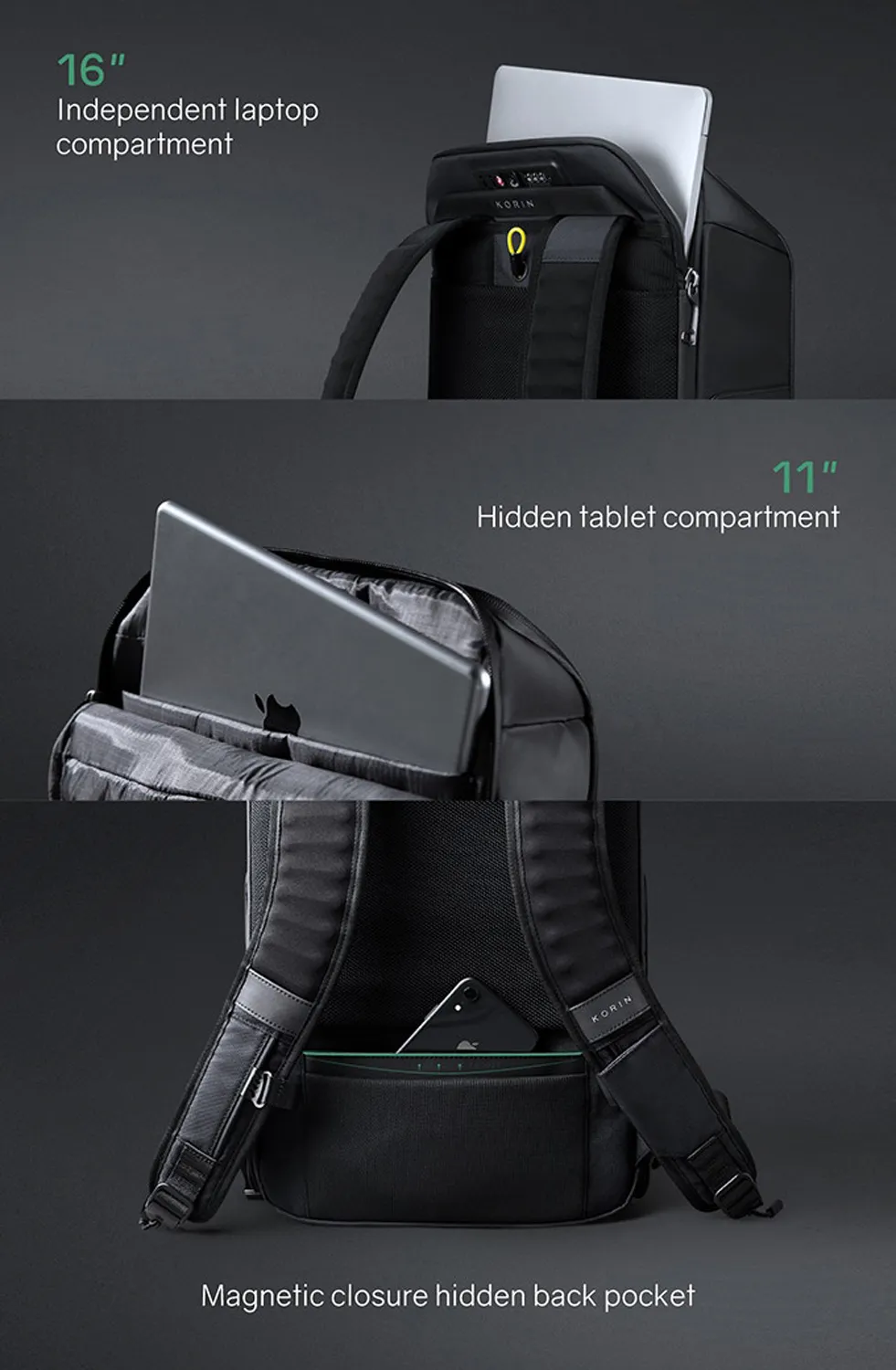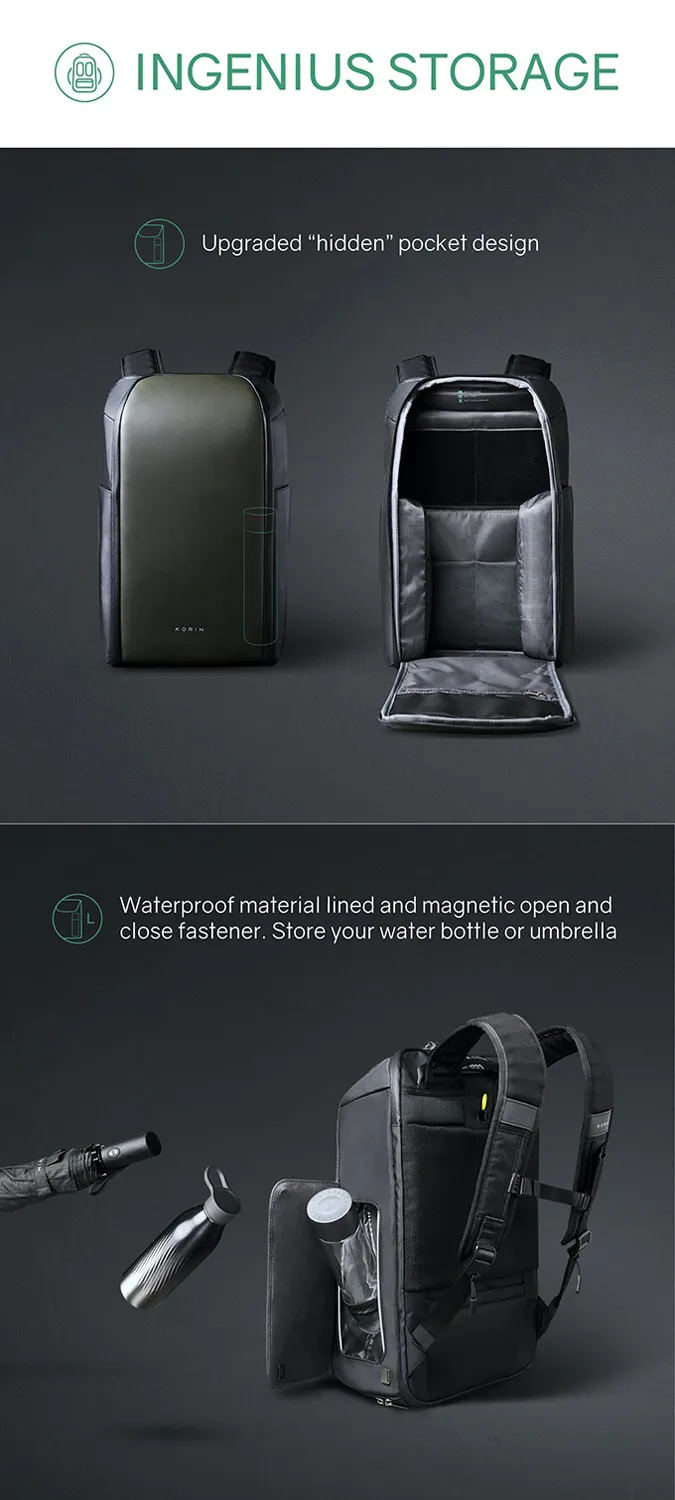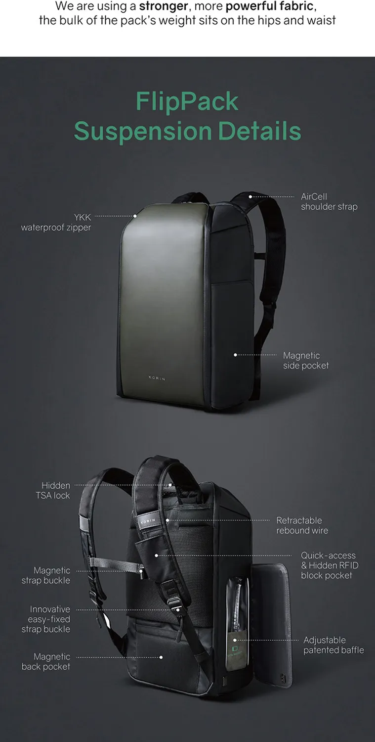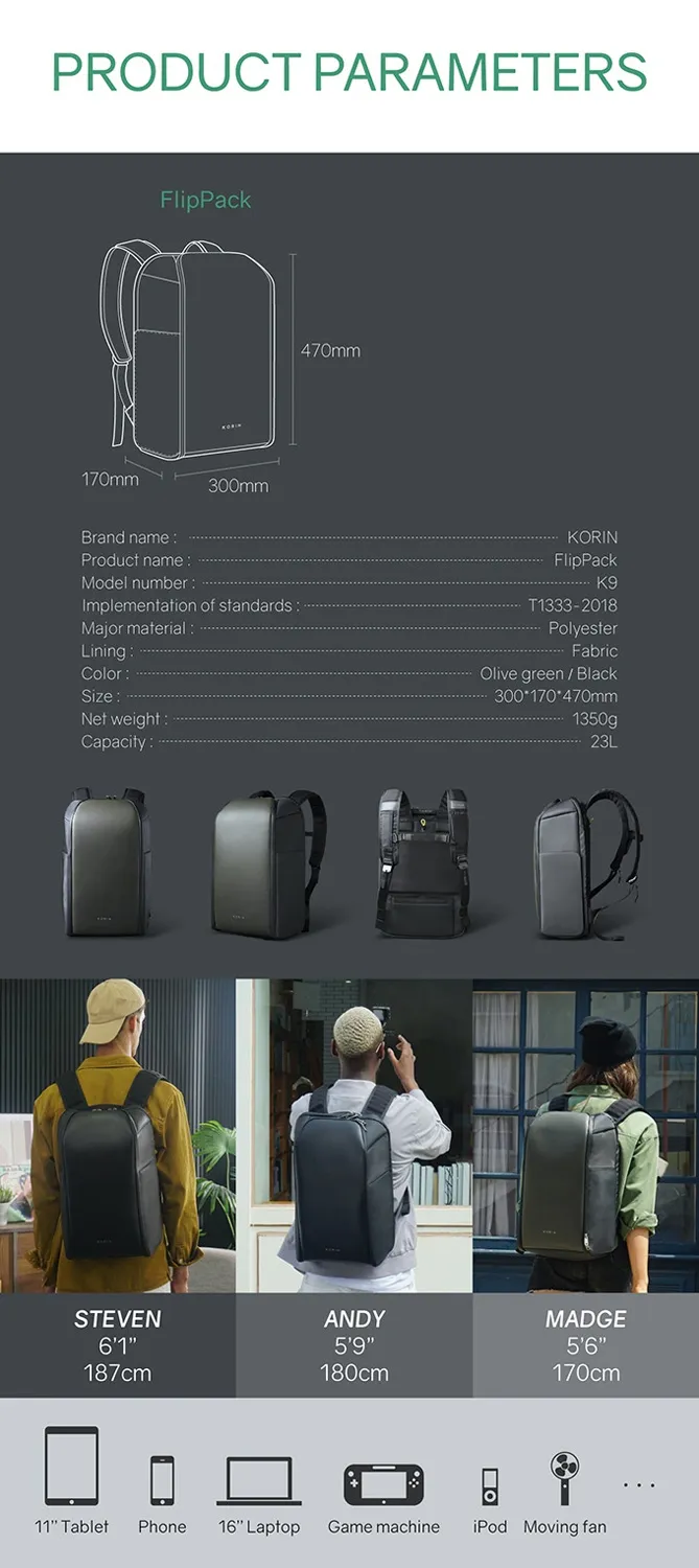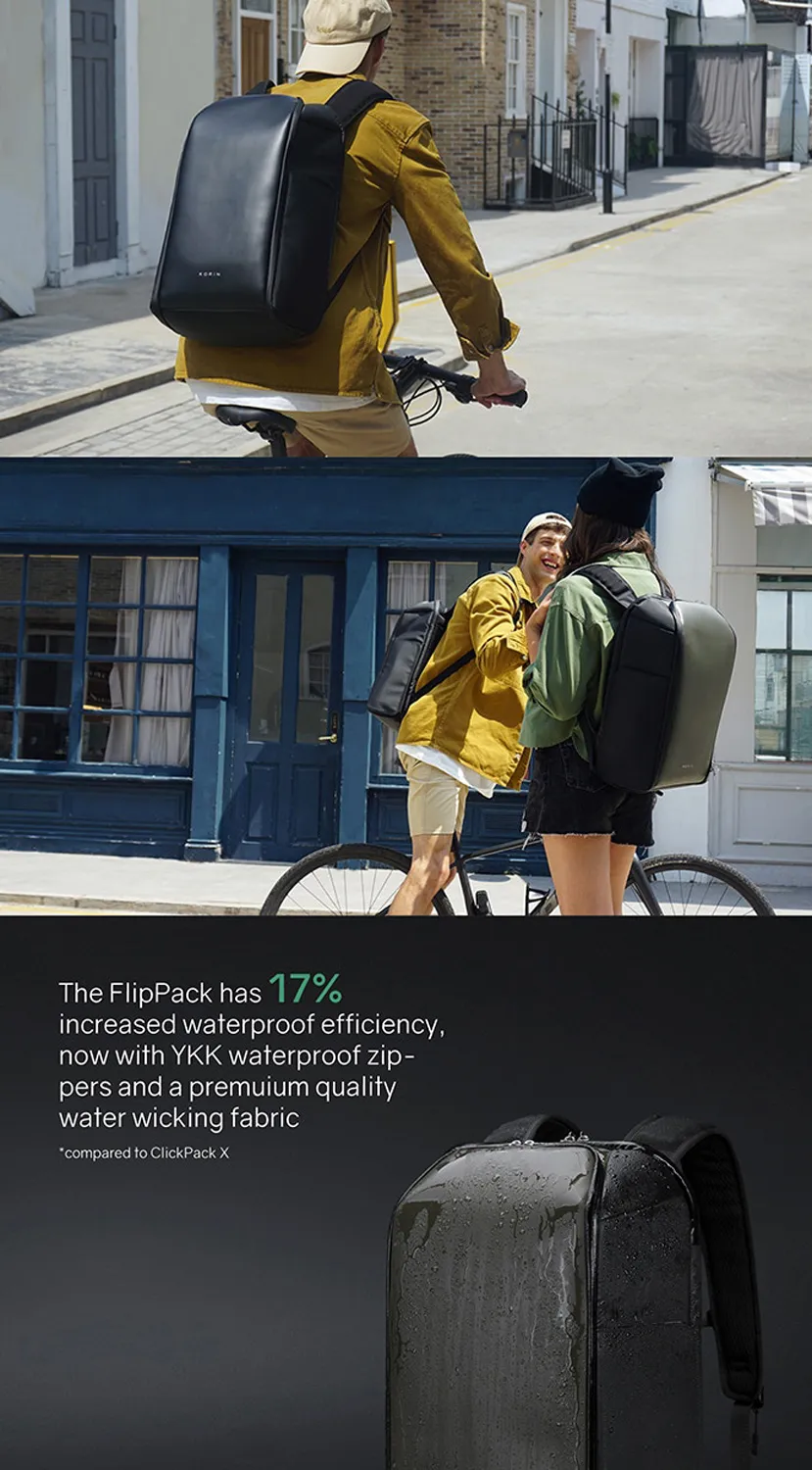 Складной рюкзак FlipPack черного цвета. Молнии рюкзака полностью расстегиваются, и его можно сложить в плоскую конструкцию. Рюкзак трехслойный: верхний слой - прочный водоотталкивающий полиэстер (искусственная кожа), слой вспененного материала и слой мягкой подкладочной ткани. Такая конструкция надежно защищает находящиеся внутри рюкзака предметы от воды, деформаций и других внешних. Детально продуманная организация отделений позволяет грамотно распределить вес. Самые тяжелые предметы располагаются ближе к спине. Благодаря плотным перегородкам ноутбук и планшет надежно фиксируются и не перемещаются при ходьбе. Вентилируемая мягкая спинка из специальной устойчивой к разрыву ткани с easy access карманом для телефона или портмоне с магнитной застежкой. Также на спинке находится специальная лямка для крепления рюкзака на выдвижную ручку чемодана, ручка, за которую при необходимости удобно нести рюкзак в руках, и трос, которым можно обхватить неподвижный предмет и затем фиксировать бегунком молнии в кодовом замке. Трос выдерживает нагрузку до 50 кг. Широкие мягкие лямки рюкзака из дышащей ткани с удобной новой системой регулировки и фиксации пряжек в купе с поперечным ремнем на магнитной пряжке и анатомической конструкцией рюкзака перераспределяют часть нагрузки с плечей и спины на талию и бедра, в результате чего вес рюкзака воспринимается на 20-25% легче, чем при использовании стандартных моделей. Дополнительно на лямках расположен easy access карман с RFID-защитой для кредитной карточки и петельки, за которые можно прицепить очки или проводные наушники. • Размер рюкзака 47х30х17 см • Объем 23 л, • Вес 1350 гр. Ключевые моменты: • Складывается в плоскую конструкцию размером 50х30х6,5 см • Вентилируемая мягкая спинка Внутреннее наполнение: • Отделение для ноутбука диагональю до 16” • Карманан для планшета диагональю до 11” - 26х14 см • Отделение с водонепроницаемой молнией YKK, с кодовым замком TSA007 с функцией таможенного досмотра • Основное отделение с семью карманами - 44х27 см Внешняя сторона: • easy access карман для телефона или портмоне - 10х20,5 см • Лямка для крепления рюкзака на выдвижную ручку • Карман easy access карман с RFID-защитой • Петельки для очков или проводных наушников на лямке • 4 открытых кармана на спинке (2 - 11,5х13,5 см) (2 - 15,5х13,5 см) • 1 карман на молнии - 15,5х19 см • 2 кармана на молниях на откидной передней части - 12х15 см и 13х15,5 см. • 2 водозащищенных easy access кармана с крышками на сильных магнитах. Один карман - 27х13х6,5 см c дополнительной специальной водозащитой для термокружки, бутылки с водой или зонта. Второй карман - 27х13х5 см для мелкой электроники с дополнительной регулируемой мягкой перегородкой на липучке.