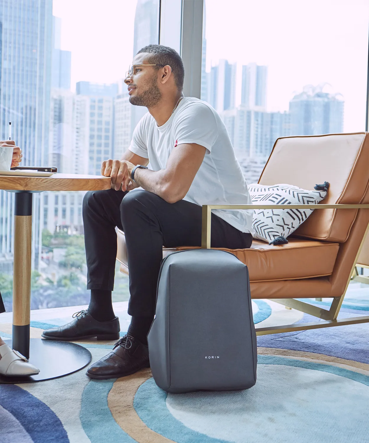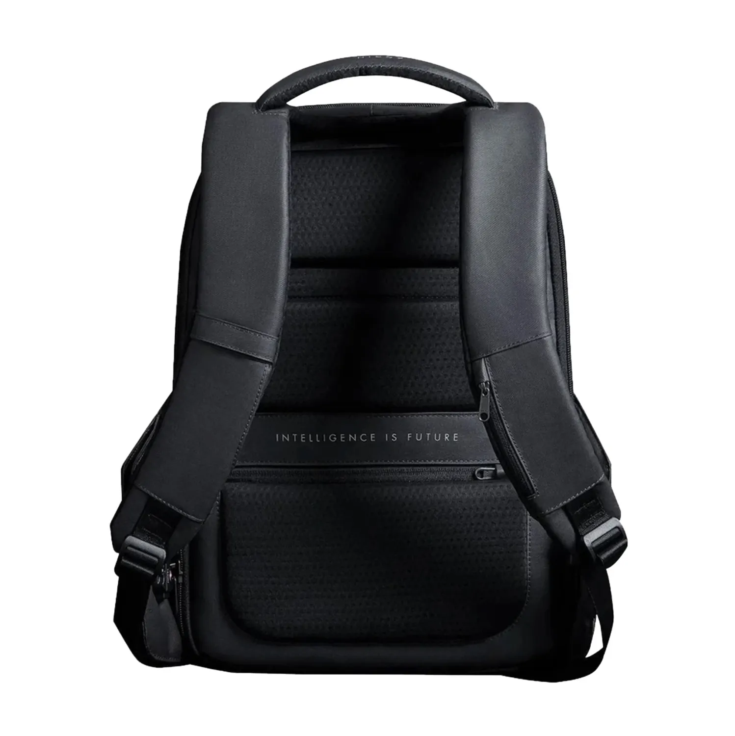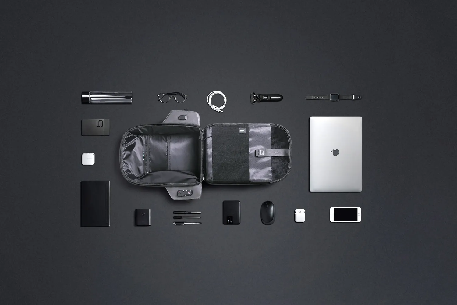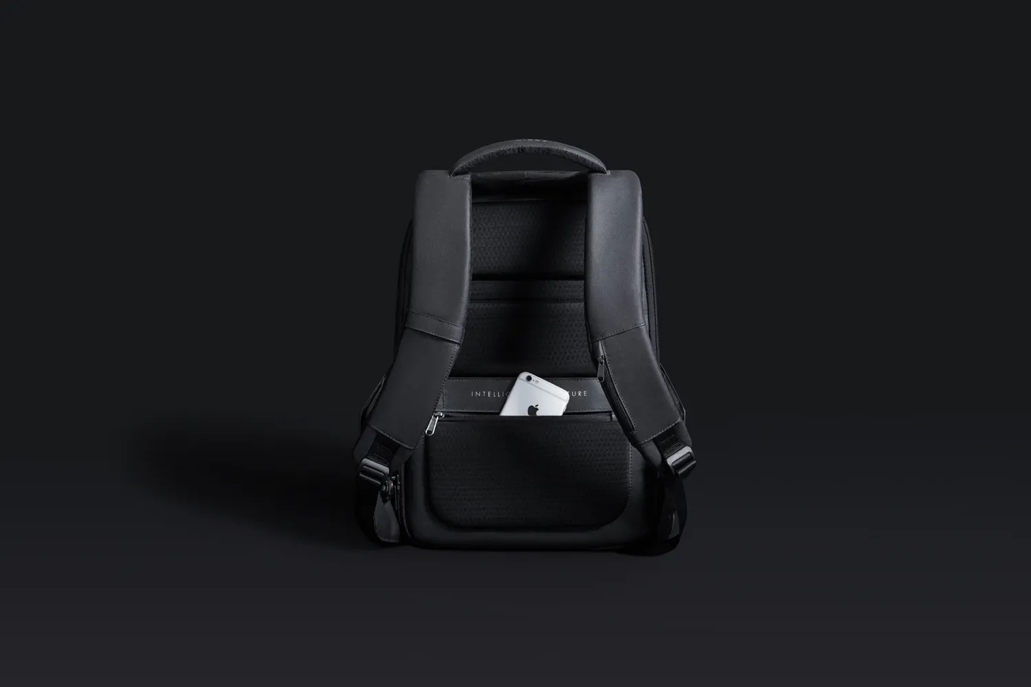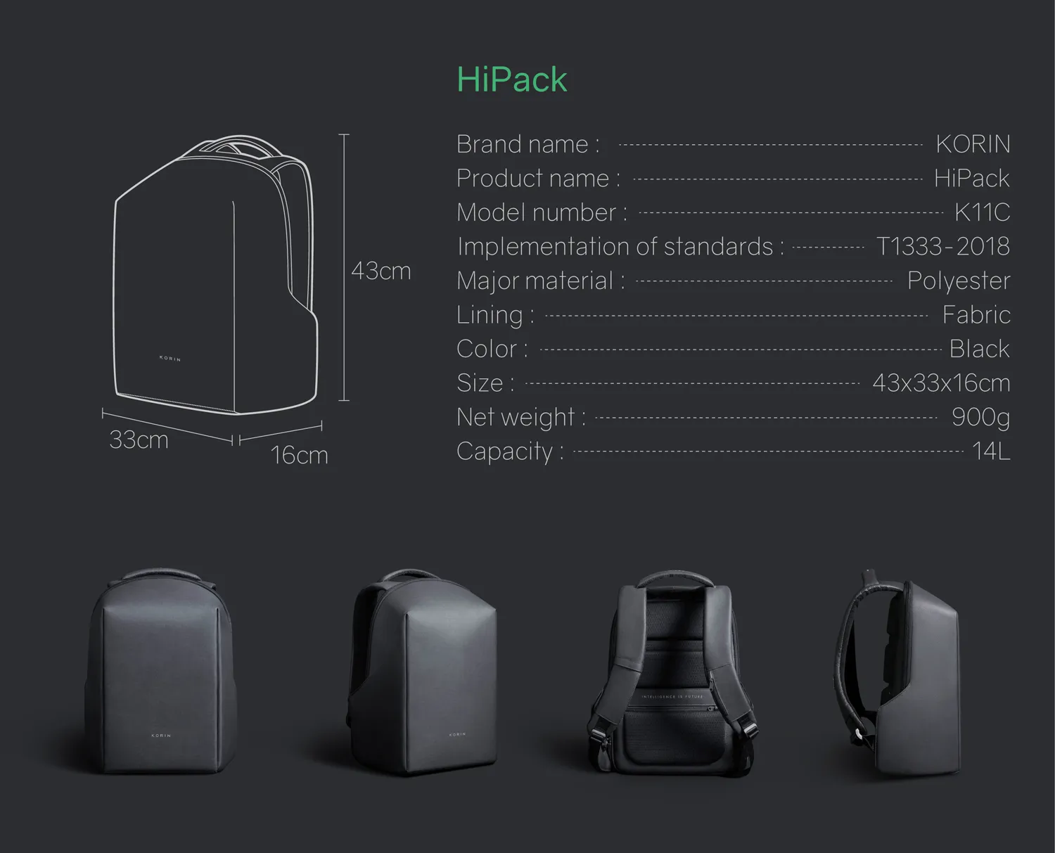 Легкий компактный городской рюкзак HiPack черного цвета, обладатель премии Good Design Award 2019. Сделан из высокопрочного устойчивого к порезам и трению водоотталкивающего многослойного полиэстера, не требующего специального ухода. При необходимости его достаточно протереть влажной салфеткой. Конструкция достаточно жесткая, не деформируется. Детально продуманная организация отделений позволяет грамотно распределить вес и снизить нагрузку на плечи. Самые тяжелые предметы располагаются ближе к спине, например, отделение для ноутбука. Благодаря плотной перегородке ноутбук надежно фиксируется и не перемещается при ходьбе. Специальная анатомическая конструкция снижает нагрузку на плечи и спину, и вес рюкзака воспринимается на 20-25% легче, чем при использовании стандартных моделей рюкзаков. Вентилируемая спинка с мягкими анатомическими вставками. Конструкция рюкзака позволяет открывать его под тремя разными углами: 30°, 90°, 180°. Если необходимо достать какие-либо мелочи, достаточно открыть под углом в 30° или 90°, а для того, чтобы аккуратно уложить в рюкзак много различных предметов, просто положите его и раскройте на 180°. Дополнительно основное отделение оснащено тремя открытыми карманами под мелочи, двумя карманами на молниях и двумя карманами, в один из которых можно поместить powerbank, т к в него приходит USB-кабель, который соединен с портом на внешней стороне рюкзака для легкого подключения к смартфону. • Размер 43х33х16 см, • Объем 14 л, • Вес 900 гр. Ключевые моменты: • Вентилируемая спинка с мягкими анатомическими вставками. • Возможность открывать рюкзак под разными углами: 30°, 90°, 180°. • Молнии YKK фиксируются с помощью кодового замка TSA007 с функцией таможенного досмотра • Водонепроницаемое боковое отделение для зонта или бутылки • Карман закрывается магнитной застежкой Внешняя сторона: • easy access карманы для карточек на каждой лямке - 6х10 см • Петелька для очков или проводные наушники на правой лямке • Внешний потайной карман на молнии на спинке - 23х12 см • Лямка для крепления рюкзака на выдвижную ручку чемодана. Внутреннее наполнение: • Отделение для ноутбука ноутбука диагональю до 15,6” - 34х26х3 см • Плотные перегородки • 3 открытых карманами под мелочи • 1 карман 22х16 см • 1 карман 22х13 см на молниях • 2 кармана 12х16 см