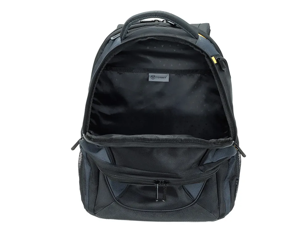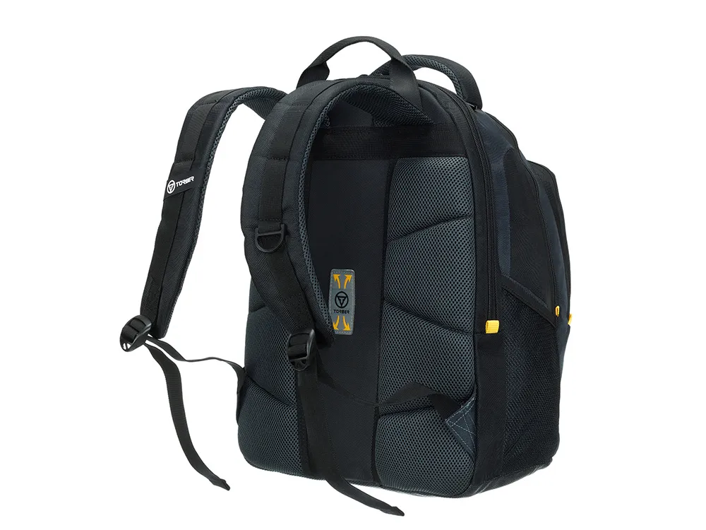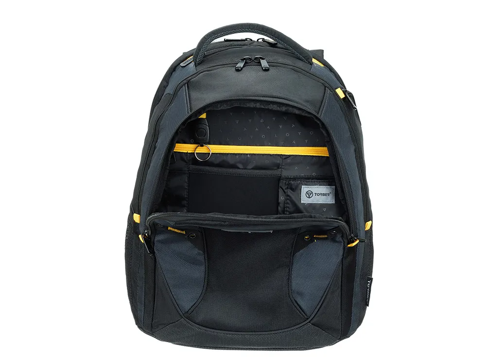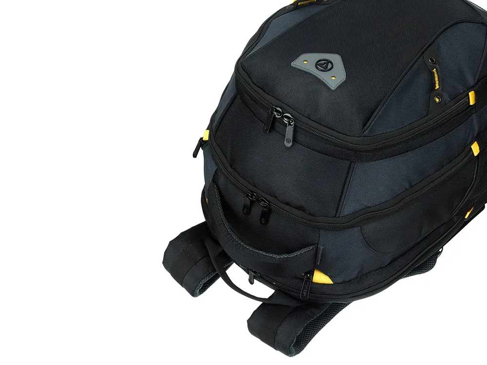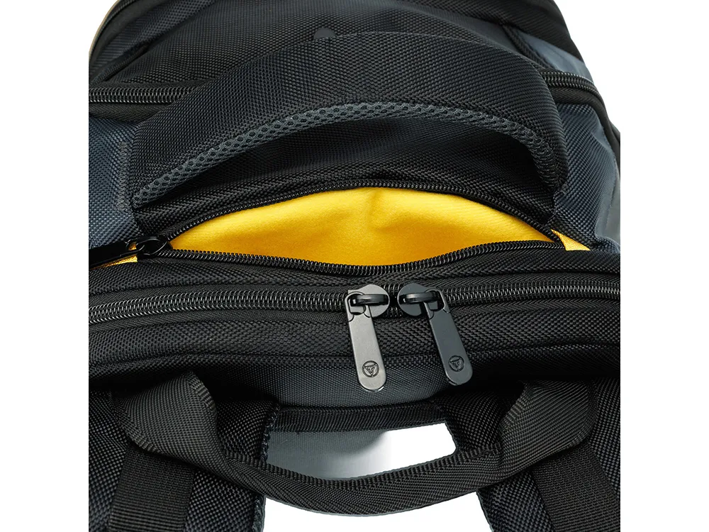 Этот рюкзак создан для тех, кто ценит безупречную организацию пространства. Словно опытный стратег, он предусмотрел всё до мельчайших деталей: от крупных отделений до миниатюрных карманов для мелочей. Изысканный чёрный рюкзак с акцентами солнечного жёлтого цвета подчёркивает ваш безупречный вкус, а продуманная эргономика превращает поиск вещей в удовольствие. Каждая деталь рюкзака работает на создание идеальной системы хранения. Внутренние перегородки и карманы организованы по принципу умного города — всё на своих местах, всё доступно в один клик. Даже самый неорганизованный пользователь мгновенно освоит эту гениальную систему. Функциональные особенности: - Регулируемые плечевые ремни - Эргономичная спинка с системой циркулирования воздуха - Возможность крепления на телескопическую ручку чемодана - Отделение для ноутбука диагональю 15,6" - Карман для планшета - Сетчатый карман на молнии в основном отделении - Карман для бутылки - Карман для зонтика - Карман для очков - Органайзер Материал: полиэстер Размер: 35,5 х 23 х 45 см Объем: 30 л