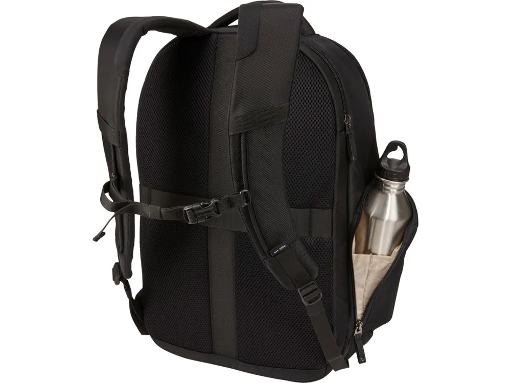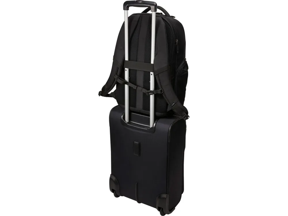 Имеет большое основное отделение на молнии с мягким чехлом для ноутбука 17,3" и планшета 10,1" и сетчатый карман на молнии для кабелей и аксессуаров. Поставляется с передней панелью-органайзером для хранения небольших электронных приборов, кабелей, аксессуаров, визитных карточек и ключей. Имеет расширяемые боковые карманы под бутылку с водой или блок питания, мягкие наплечные ремни, стеганую заднюю панель из сетки, мягкую ручку и рукав для фиксации на выдвижной ручке дорожной сумки. Гарантия от Case Logic: 25 лет.