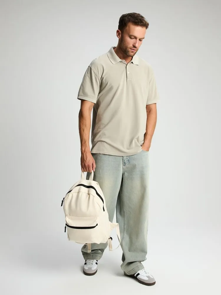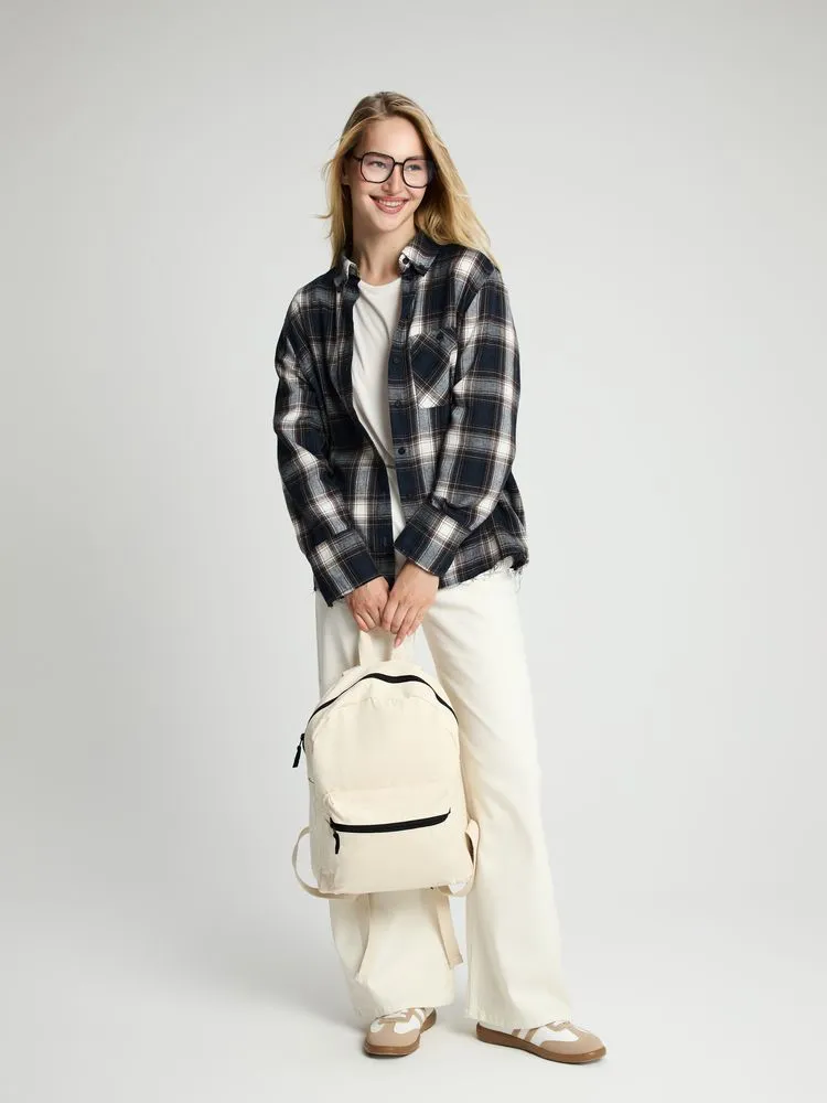 Легкий рюкзак в экостиле — из плотного неокрашенного хлопка с контрастными деталями.