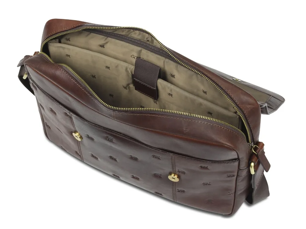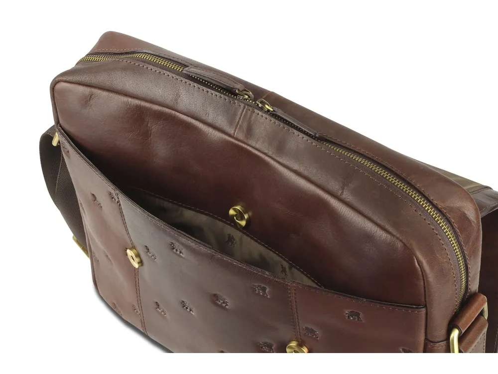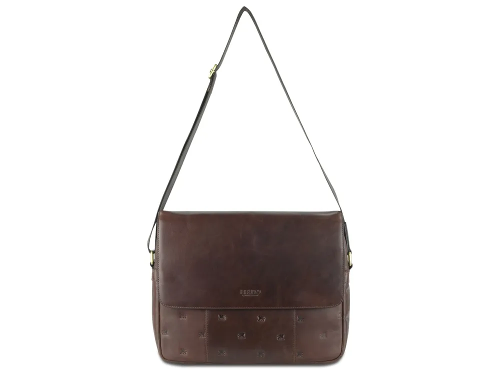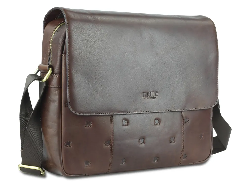 Коллекция «DON LEON» - квинтэссенция инноваций бренда MANO 1919®. Все изделия коллекции изготовлены вручную из высококачественной натуральной кожи буйвола в роскошном коричневом цвете. Элегантное тиснение в виде льва и изящный логотип подчеркивают индивидуальный стиль коллекции. MANO 1919 ®. Сумка-мессенджер с отделением для ноутбука M191920741 Универсальная сумка-мессенджер M191920741 с вместительным основным отделением для документов и ноутбука и дополнительными карманами для необходимых мелочей станет практичным компаньоном для школы, университета или офиса. Благодаря классической форме и роскошному коричневому цвету сумка-мессенджер будет идеальным привлекательным спутником в повседневной жизни. Размеры: 30 см (В) x 38 см (Ш) x 7 см (Г) Материал: натуральная кожа буйвола Особенности: • Основное отделение на молнии закрывается на перекидной клапан с 2 магнитными застежками • Дополнительное отделение • Внутренний карман на молнии • Мягкое отделение для ноутбука диагональю 14″ • Карман для мобильного телефона и 2 отделения для ручек • Задний карман на молнии • Регулируемый плечевой ремень до 145 см • Ремень для крепления к телескопической ручке чемодана • Первоклассная кожа, качественная подкладка и надежные застежки на кнопках и молнии гарантируют долговечность изделия