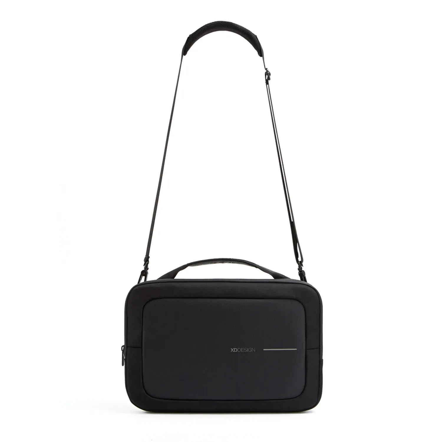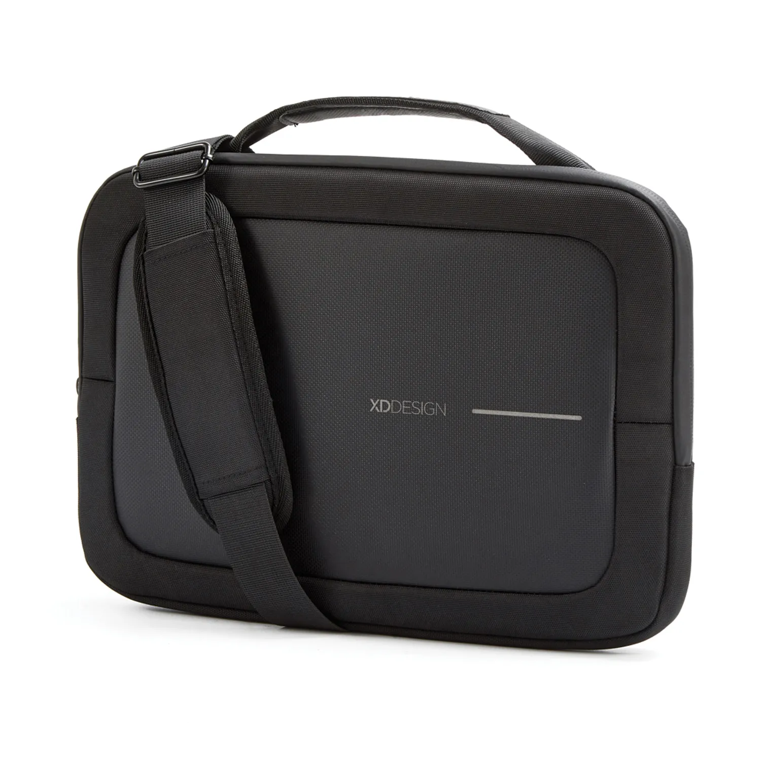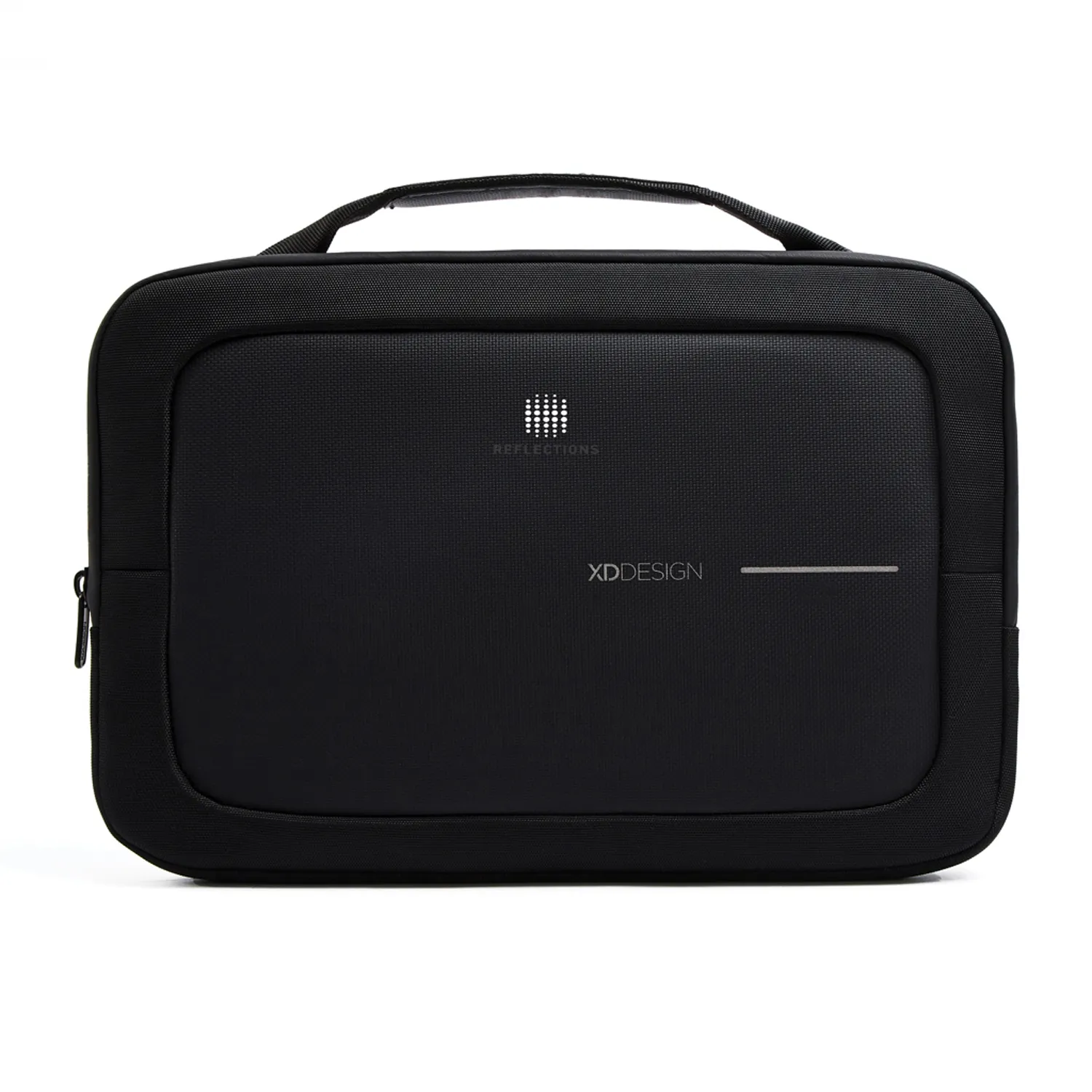 Сумка для ноутбука от XD Design станет надежным спутником, куда бы вы ни отправились. Это настоящее воплощение стиля и функциональности. Она изготовлена из переработанных пластиковых бутылок с водоотталкивающим покрытием, поэтому вашей технике не страшны ни дождь, ни снег. Внутри — мягкая подкладка из приятного на ощупь флиса, которая гарантирует безопасность ноутбуку. Несмотря на компактные размеры, в сумку поместятся зарядные устройства, мышь и необходимые в поездке вещи. На задней стороне есть дополнительный карман, а удобный плечевой ремень можно снять при необходимости. Сумка подходит для ноутбуков диагональю до 14’’. Сертифицировано AWARE™. Наличие индикаторных частиц AWARE™ подтверждает, что мы действительно используем переработанные материалы. 2% с продажи каждой вещи, отмеченной сертификатом AWARE™, мы перечисляем в поддержку всемирной организации Water.org.