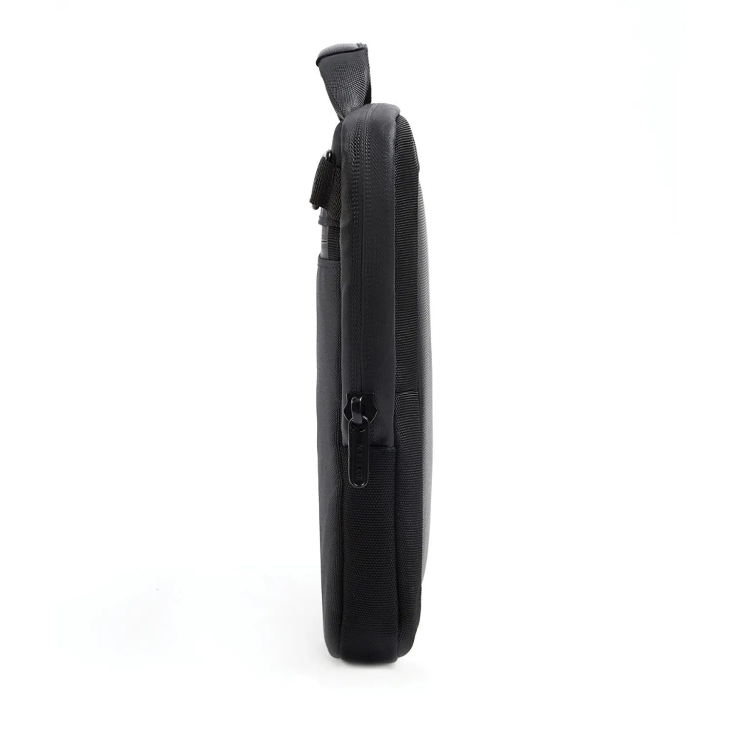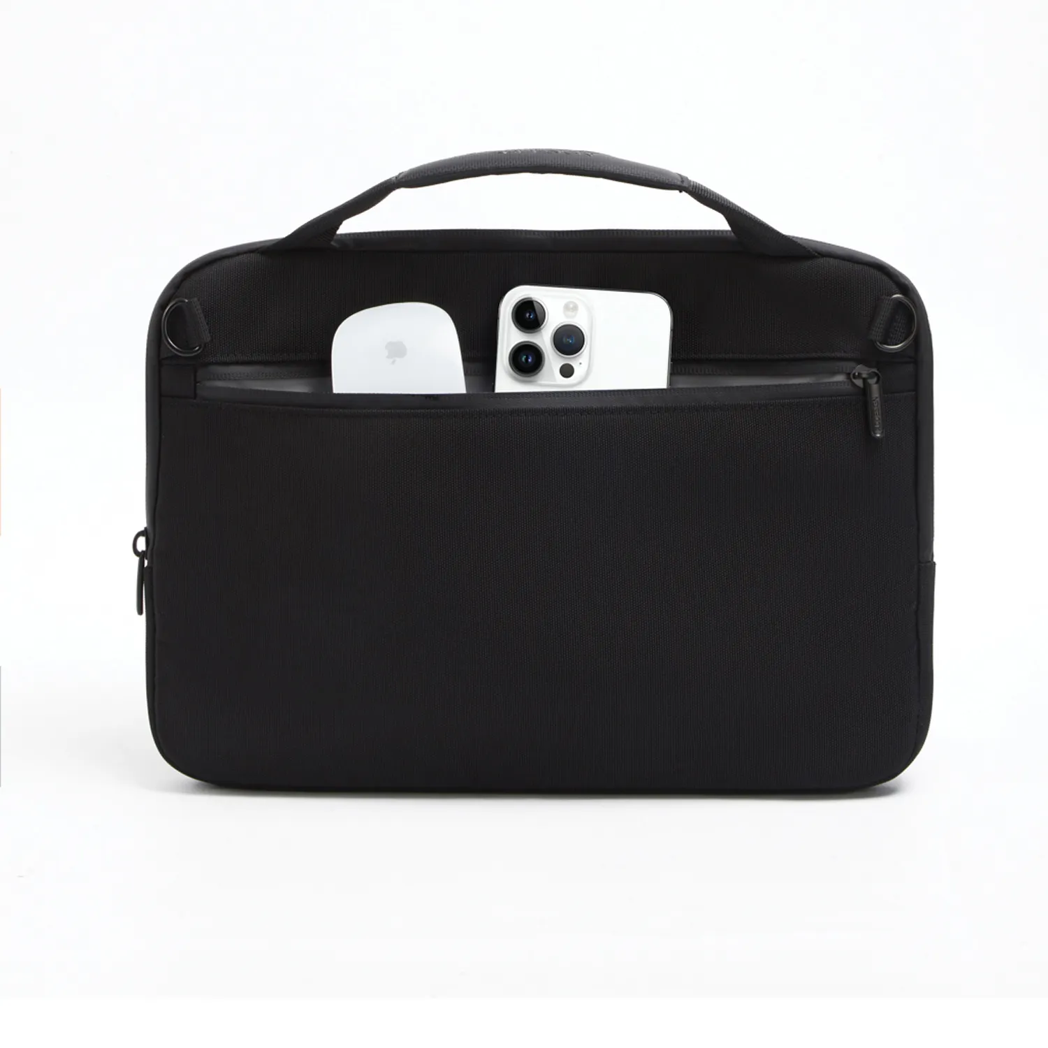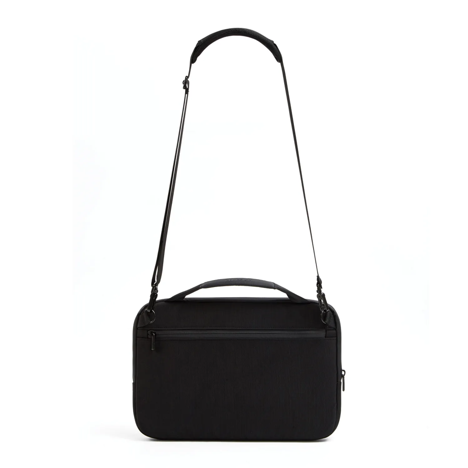 Сумка для ноутбука от XD Design станет надежным спутником, куда бы вы ни отправились. Это настоящее воплощение стиля и функциональности. Она изготовлена из переработанных пластиковых бутылок с водоотталкивающим покрытием, поэтому вашей технике не страшны ни дождь, ни снег. Внутри — мягкая подкладка из приятного на ощупь флиса, которая гарантирует безопасность ноутбуку. Несмотря на компактные размеры, в сумку поместятся зарядные устройства, мышь и необходимые в поездке вещи. На задней стороне есть дополнительный карман, а удобный плечевой ремень можно снять при необходимости. Сумка подходит для ноутбуков диагональю до 14’’. Сертифицировано AWARE™. Наличие индикаторных частиц AWARE™ подтверждает, что мы действительно используем переработанные материалы. 2% с продажи каждой вещи, отмеченной сертификатом AWARE™, мы перечисляем в поддержку всемирной организации Water.org.