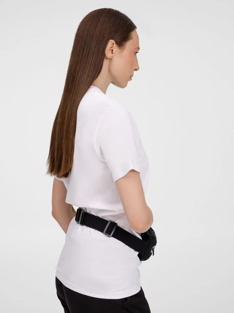 Регулируемый ремень из широкой эластичной резинки с плоским фастексом плотно облегает тело и удерживает сумку во время тренировок. Водоотталкивающая пропитка ткани защитит от влаги и грязи, а светоотражающие детали помогут оставаться заметными во время тренировок в сумерках и темноте.