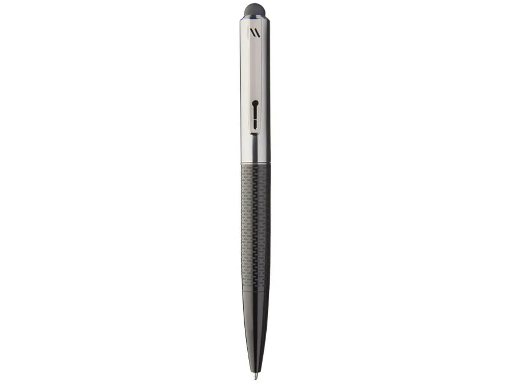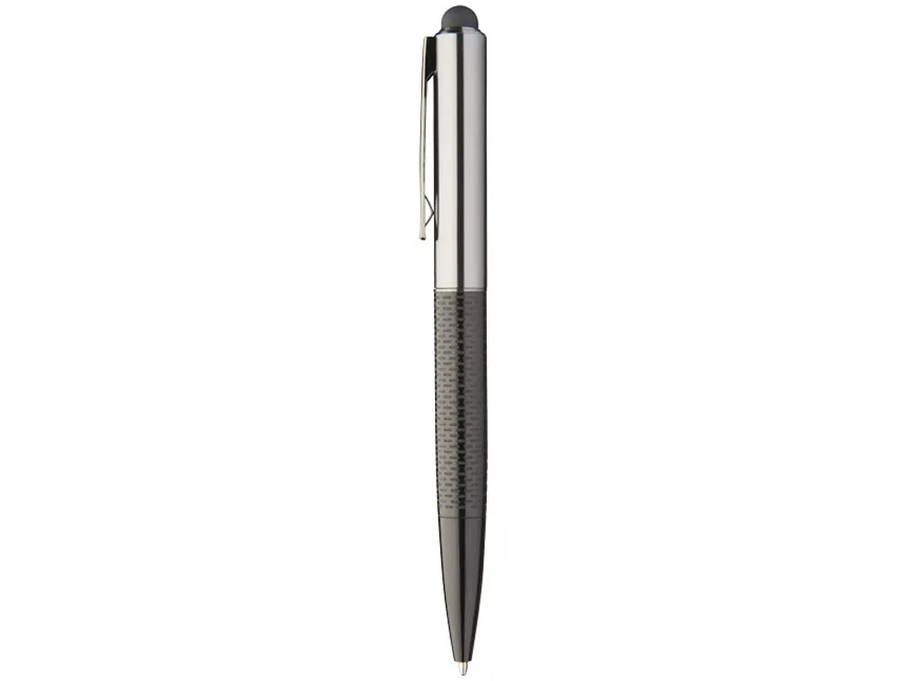 Шариковая ручка-стилус Dash. Шариковая ручка со стильным покрытием внизу корпуса. Эксклюзивный дизайн. В комплекте черный стержень высокого качества. Упакована в коробку Marksman. Металл.