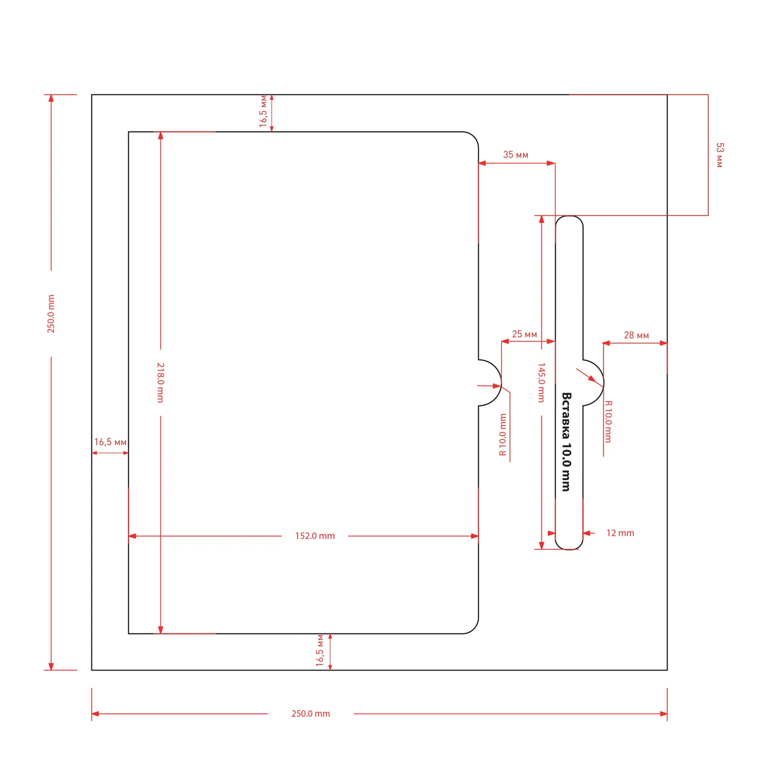 крышка: 256 х 256 мм