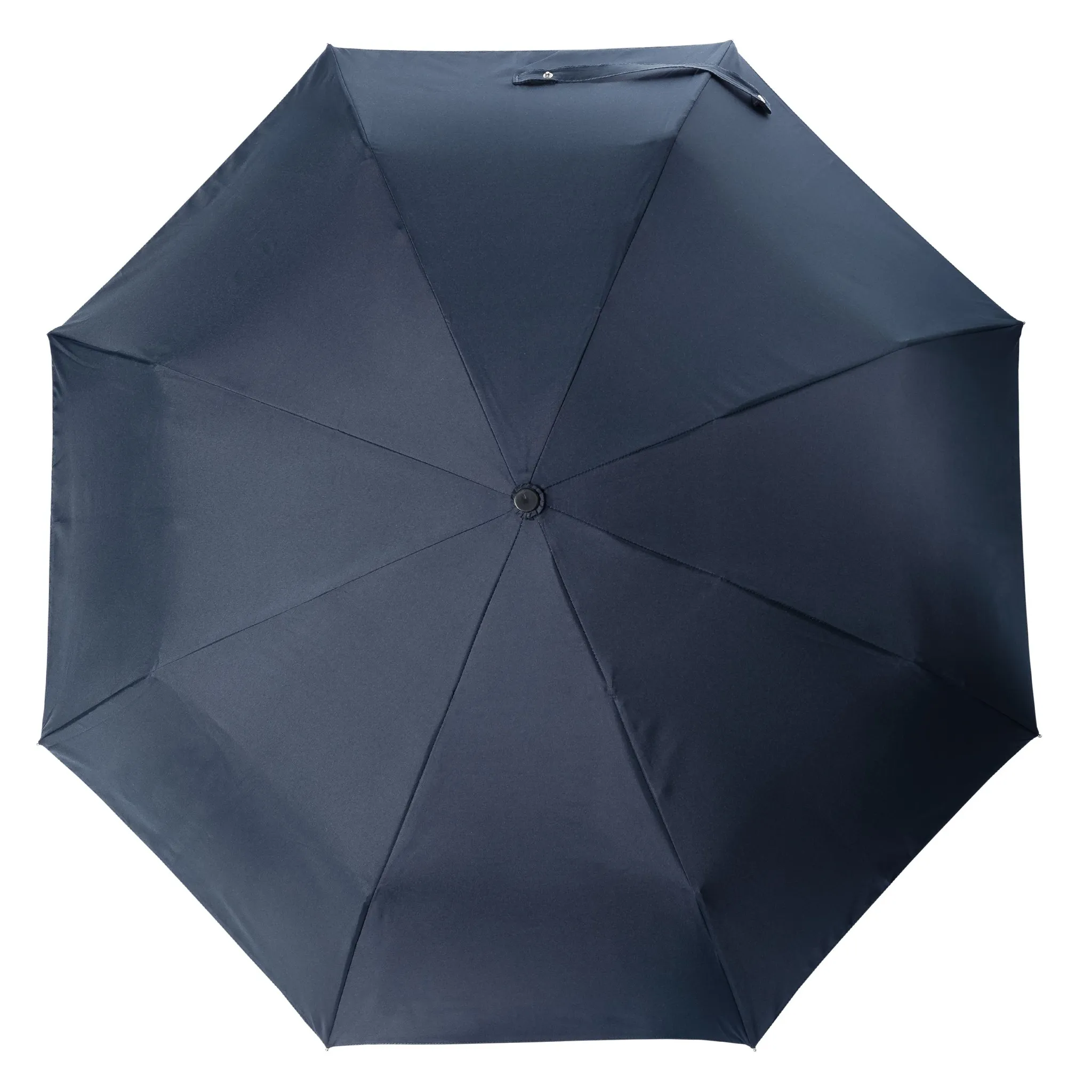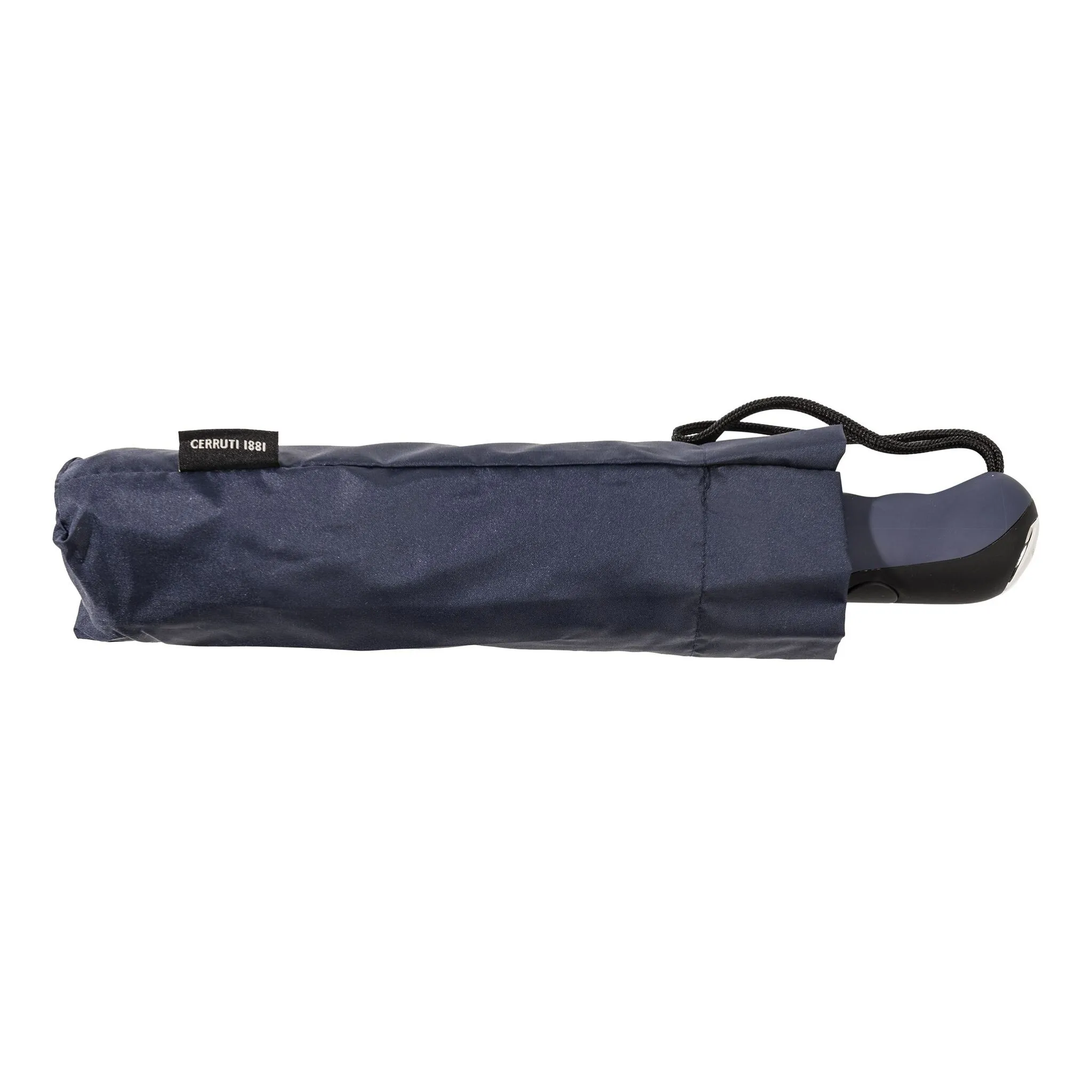 Зонт карманный "Irving" играет на контрасте черного и темно-синего. Его двойной купол синий снаружи и черный внутри, а его прорезиненная ручка очень удобно лежит в руке.