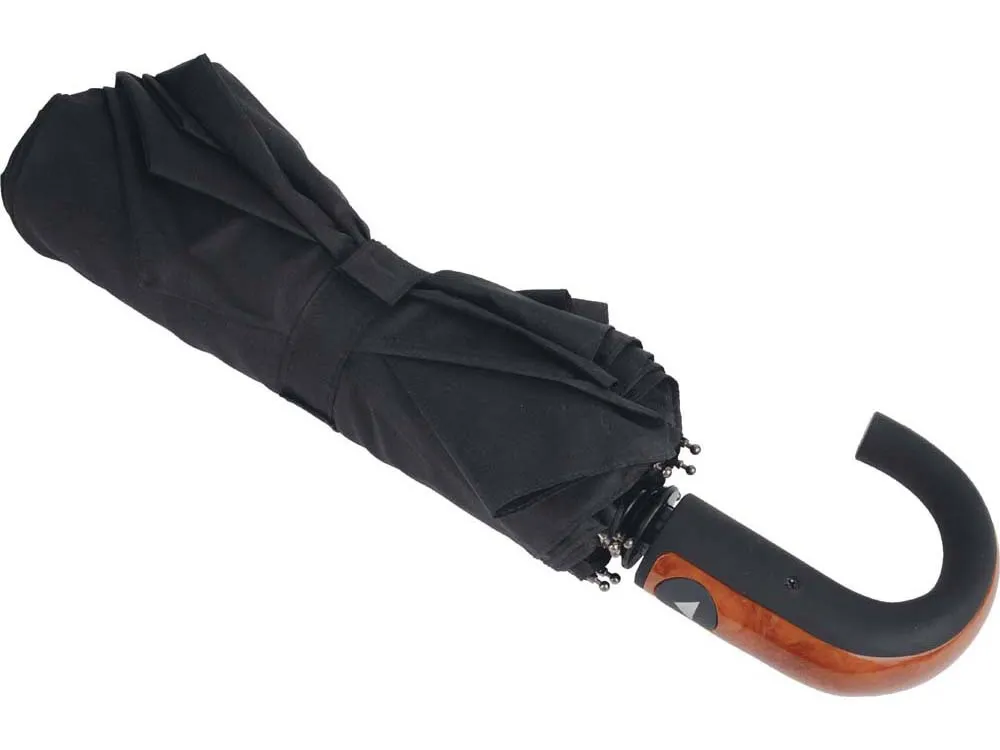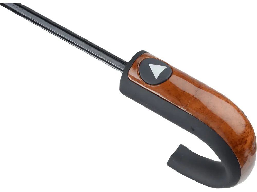 Отличный складной зонт для мужчин оснащен полуавтоматическим механизмом. Удобная рукоятка не скользит в руке, позволяя надежно удерживать зонт. Ручка зонта задекорирована под дерево. На купол можно нанести любое изображение. На выбор черная и синяя расцветки.