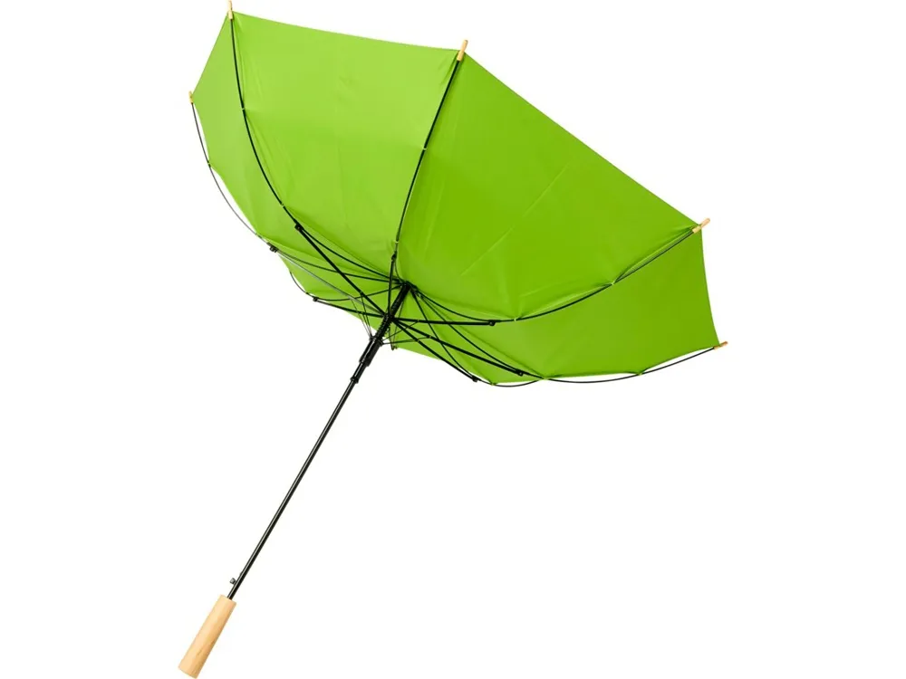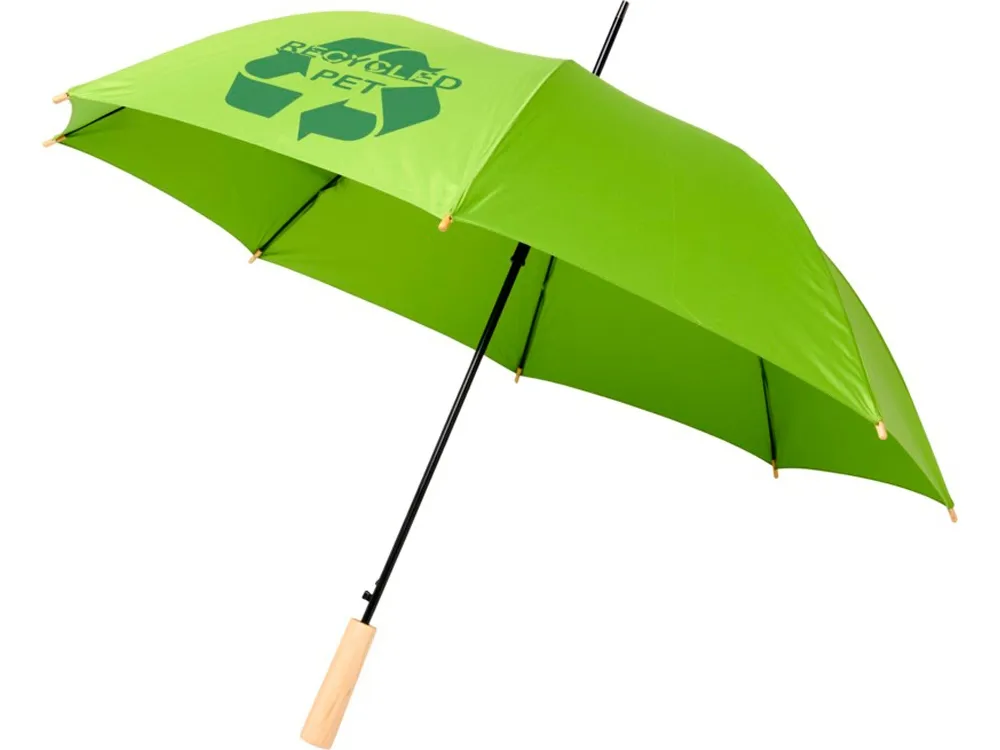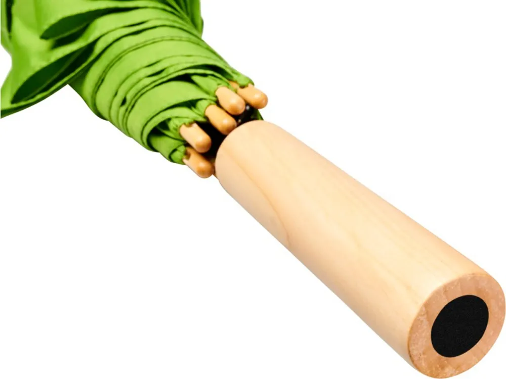 Полуавтоматический зонт с куполом из эпонж полиэстера и переработанного ПЭТ-пластика. Прочный металлический стержень, высококачественная рама со спицами из стекловолокна, обеспечивающая гибкость в ветреную погоду. Сочетание деревянной ручки, кончиков спиц и купола из эпонж полиэстера и переработанного ПЭТ-пластика обеспечивает надежность зонта.