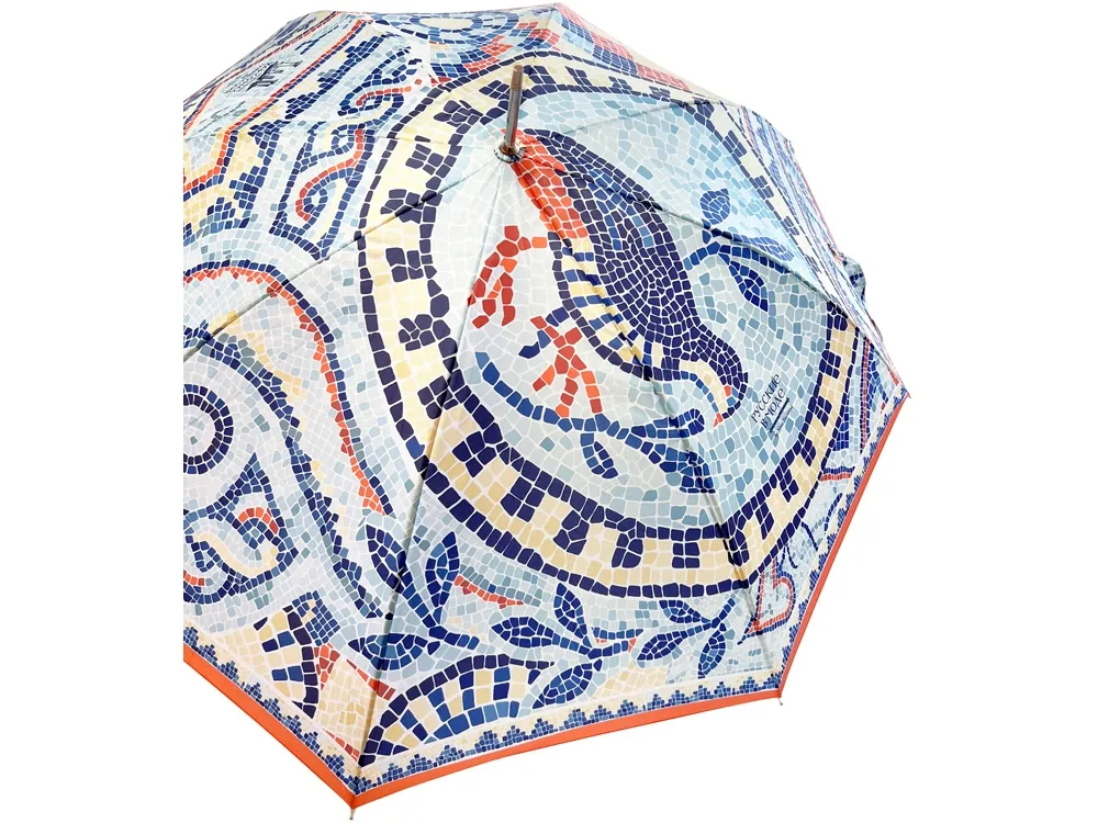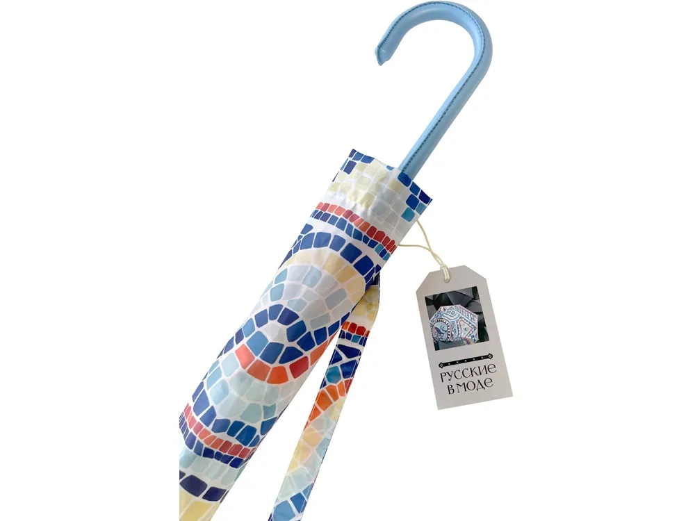 Зонт-трость «Грёзы о Византии». Византийские мотивы, морской бриз и солнце черноморского побережья — в одном аксессуаре. Авторский принт от бренда “Русские в моде” создан совместно с музеем Херсонес Таврический — для тех, кто ценит искусство в повседневности. Купол 100 см с восточным орнаментом в стиле мозаики прекрасно защитит от дождя. А ручка из экокожи удобно ложится в руку и не скользит. - механизм: полуавтомат - в комплекте идет чехол для зонта - форма зонта: трость