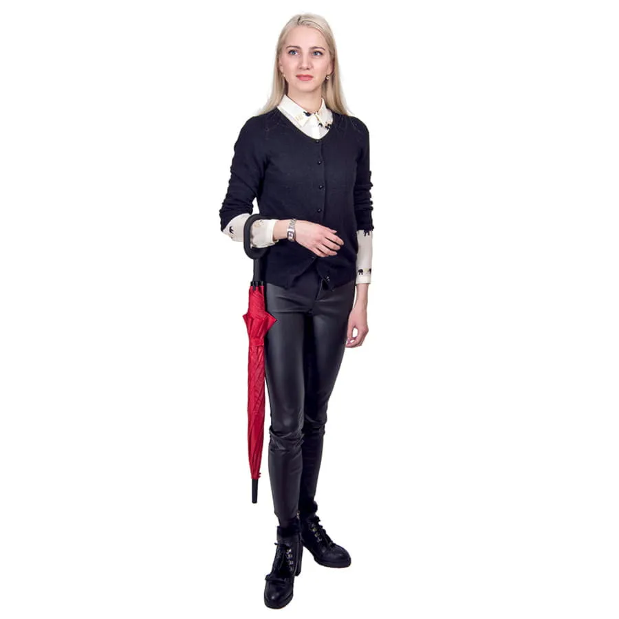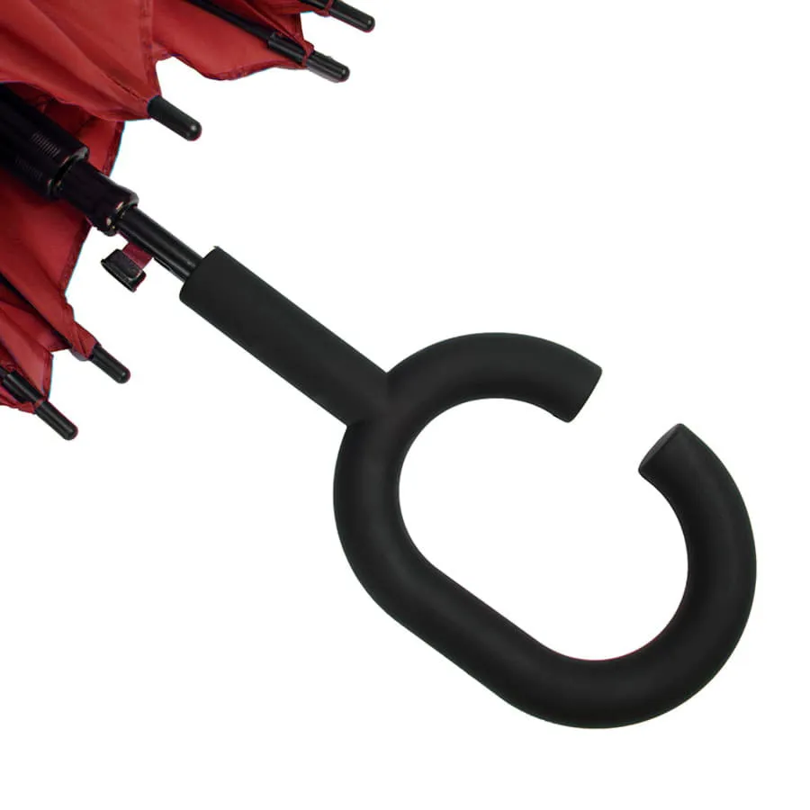 Зонт-трость, полуавтомат.Диаметр купола: 105 см., длина стержня 88 см.Состав купола: 100% полиэстер 190T.Состав стержня: металл.Состав спиц: стекловолокно.Ручка: пластик оригинальной формы, позволяющей освободить руки. Удобная и необычная ручка с soft-touch покрытием, она позволит повесить зонт на запястье и освободить руки для более важных дел-держать стакан с кофе, ответить на звонок и т.д. Или же есть возможность повесить пакет с покупками на ручку и ваша вторая рука свободна!!