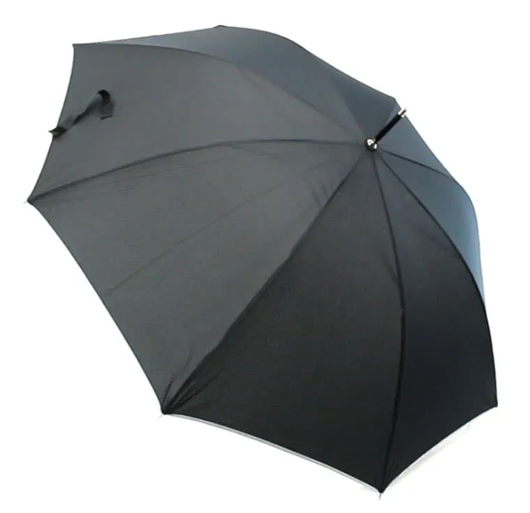 Зонт-трость, автомат.Диаметр купола: 100 см., длина стержня 85 см.Состав купола: 100% полиэстер 190T, эпонж.Состав стержня: металл.Состав спиц: металл.Ручка: искусственная кожа.Зонт с 8 панелями, выполненный в элегантном черном цвете с серой окантовкой. диаметром 100 см, с автоматическим открыванием, из прочного материала эпонж. С металлическими ребрами черного цвета, застежкой на липучке и ручкой из мягкой на ощупь искусственной кожи. Автоматический. Ручка из полиуретана.