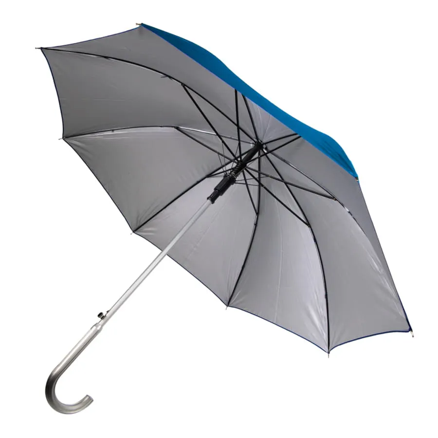 Зонт-трость, полуавтомат.Диаметр купола: 103 см., длина стержня 88,5 см.Состав купола: 100% полиэстер 190TСостав стержня: металл.Состав спиц: металл.Ручка: пластик.Цвет купола: внешняя часть pantone 1805 С, внутренняя часть Pantone 877 С.Двухцветная базовая модель зонта с изюминкой! Внутренняя часть купола серебристого цвета. Упаковка – пластиковый пакет
