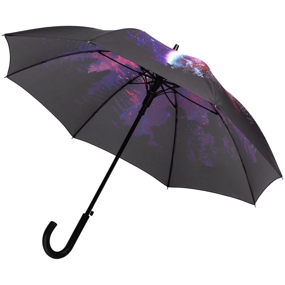 В городе невозможно разглядеть ночное небо из-за уличного освещения. На природе же оно открывается человеческому глазу полностью — насыщенное и глубокое. Зонт защитит от дождя и напомнит о красоте неба, скрытой за густыми серыми тучами.Зонт-полуавтомат. Поставляется без чехла в полиэтиленовом пакете.