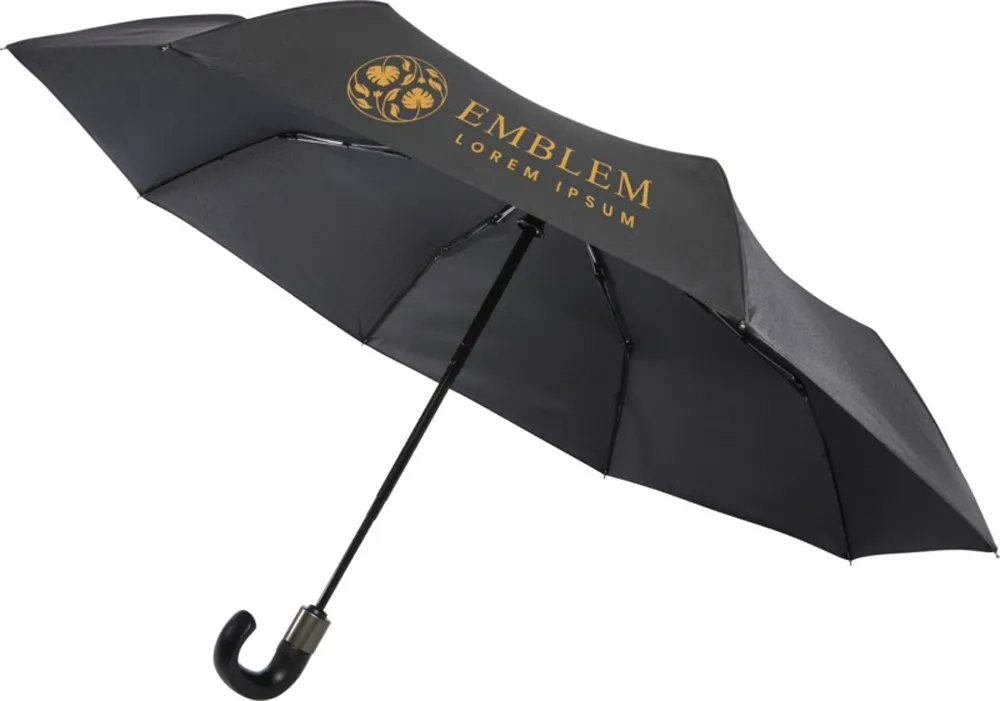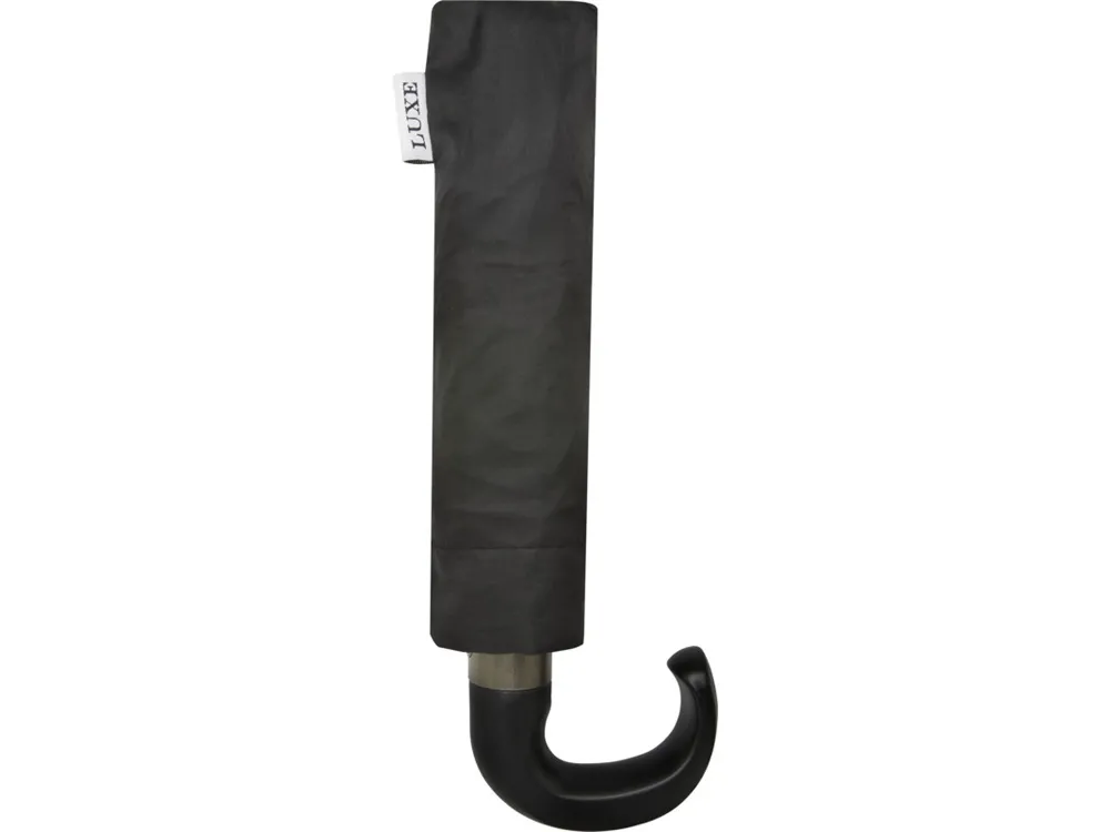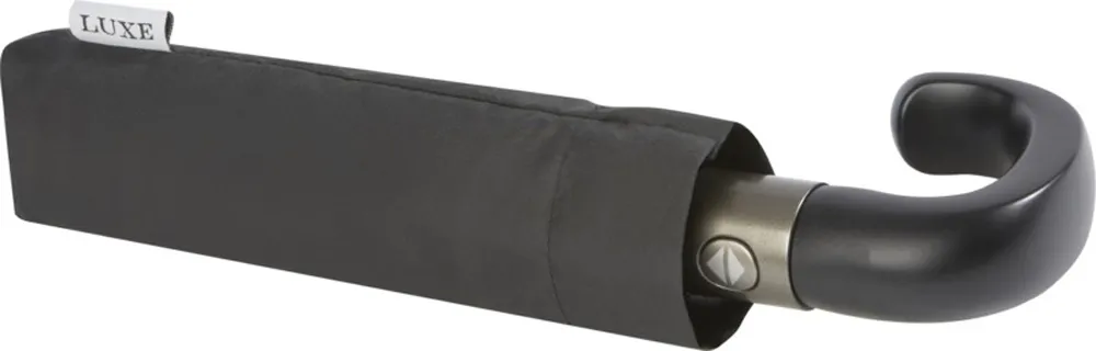 Автоматически открывающийся и закрывающийся складной зонт с куполом из эпонж полиэстера. Прочный металлический стержень, высококачественная рама со спицами из стекловолокна обеспечивают максимальную гибкость в ветреную погоду. Поставляется с чехлом и может легко поместиться в сумку или рюкзак для удобного ношения. Изогнутая ручка с мягким покрытием Soft Touch с деталями из матовой нержавеющей стали и наконечниками с черным никелевым покрытием. Тканые ярлыки с фирменными деталями Luxe на куполе, чехле и застегивающемся ремешке. Большая зона для декорирования на каждой панели купола. . Полиэстер Эпонж.