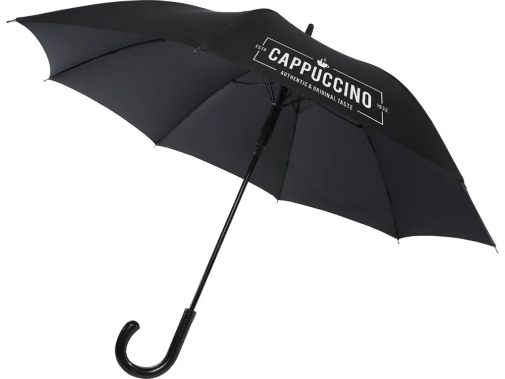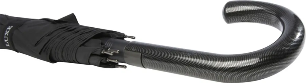 Зонт с механизмом автоматического открытия, куполом из полиэстера (эпонж) и прочным металлическим штоком с черным покрытием. Высококачественная цельная рама из стекловолокна обеспечивает в ветреную погоду максимальную гибкость. Изогнутая ручка с отделкой карбонового цвета и черными никелированными наконечниками. Тканые ярлыки с фирменными деталями Luxe на куполе и застегивающемся ремешке. Большая зона для декорирования на каждой панели купола. Полиэстер Эпонж.
