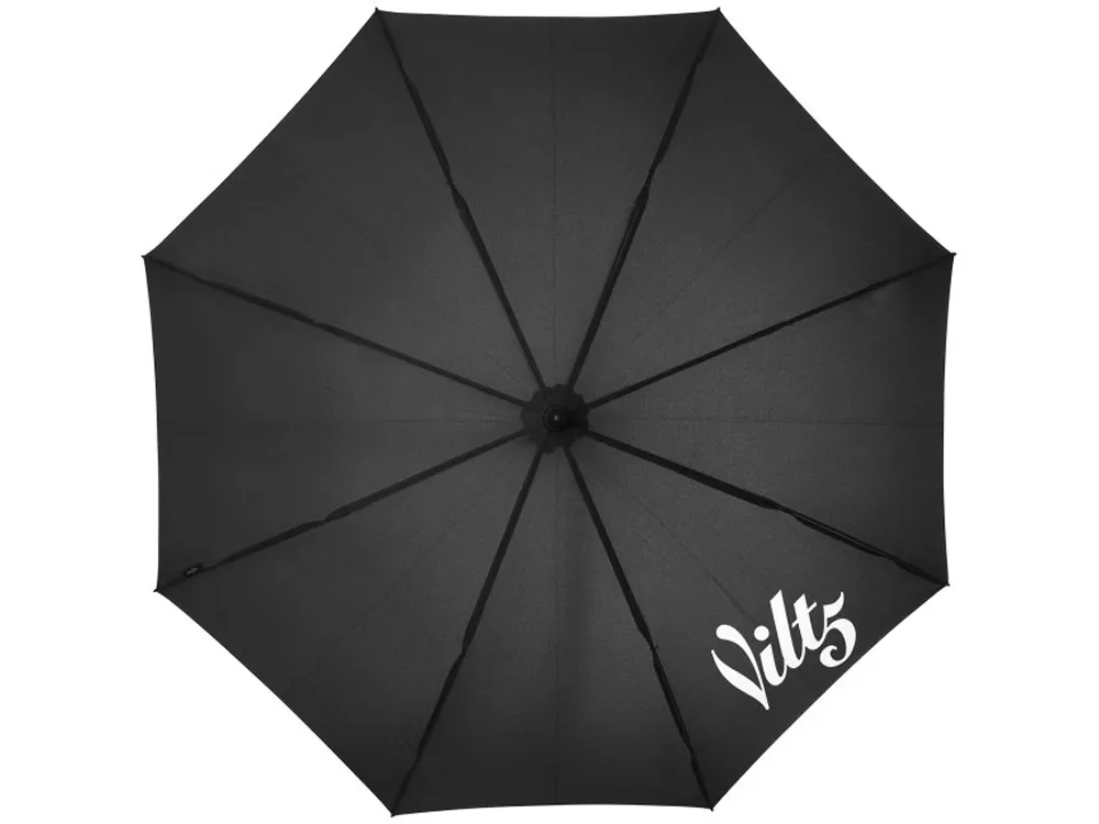 Противоштормовой зонт Noon 23" с противоветровой системой, которая делает зонт максимально гибким в ветреную погоду. Функция автоматического открытия, металлическая трость, спицы из стекловолокна и мягкая прорезиненная ручка. В комплекте чехол. Полиэстер эпонж.