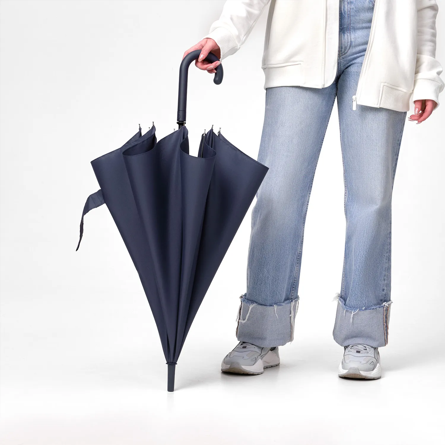 Зонт оснащен системой антиветер, что позволяет спицам не ломаться даже при сильном порыве ветра.